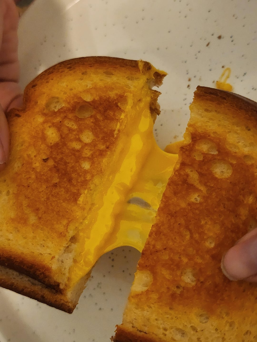 I made my wife a simple grilled cheese πby GildedArchways 15 Comments reedrick 2 weeks ago Simple, elegant, godly cheese pull. Straight from the heart. Love it!! 10/10 TrickyMoonHorse 2 weeks ago ^Oh ^fuck ^yeah. Dy3_1awn 2 weeks ago Anybody else see a dog face in the burned spot in the first picture? h0neynutcheeri0z 2 weeks ago It looks like the cheese from a goofy movie and Iβm here for it yummm AspiringOccultist4 2 weeks ago It looks absolutely perfect GildedArchways 2 weeks ago Who marked it NSFW π AdventurousTrain1927 2 weeks ago  SpecificPractice7561 2 weeks ago this is sweet basement_egg 2 weeks ago  Darth_Lacey 2 weeks ago  o0ga-bo0ga 2 weeks ago Why does that look so heavenly som_201 2 weeks ago NSFW grilled cheese? Is the cheese made from ur body fluid? FranceBrun 2 weeks ago The best kind! Good job! xLAESOPx 2 weeks ago Sheβs a real beaut, Clark. ponchofreedo 2 weeks ago
