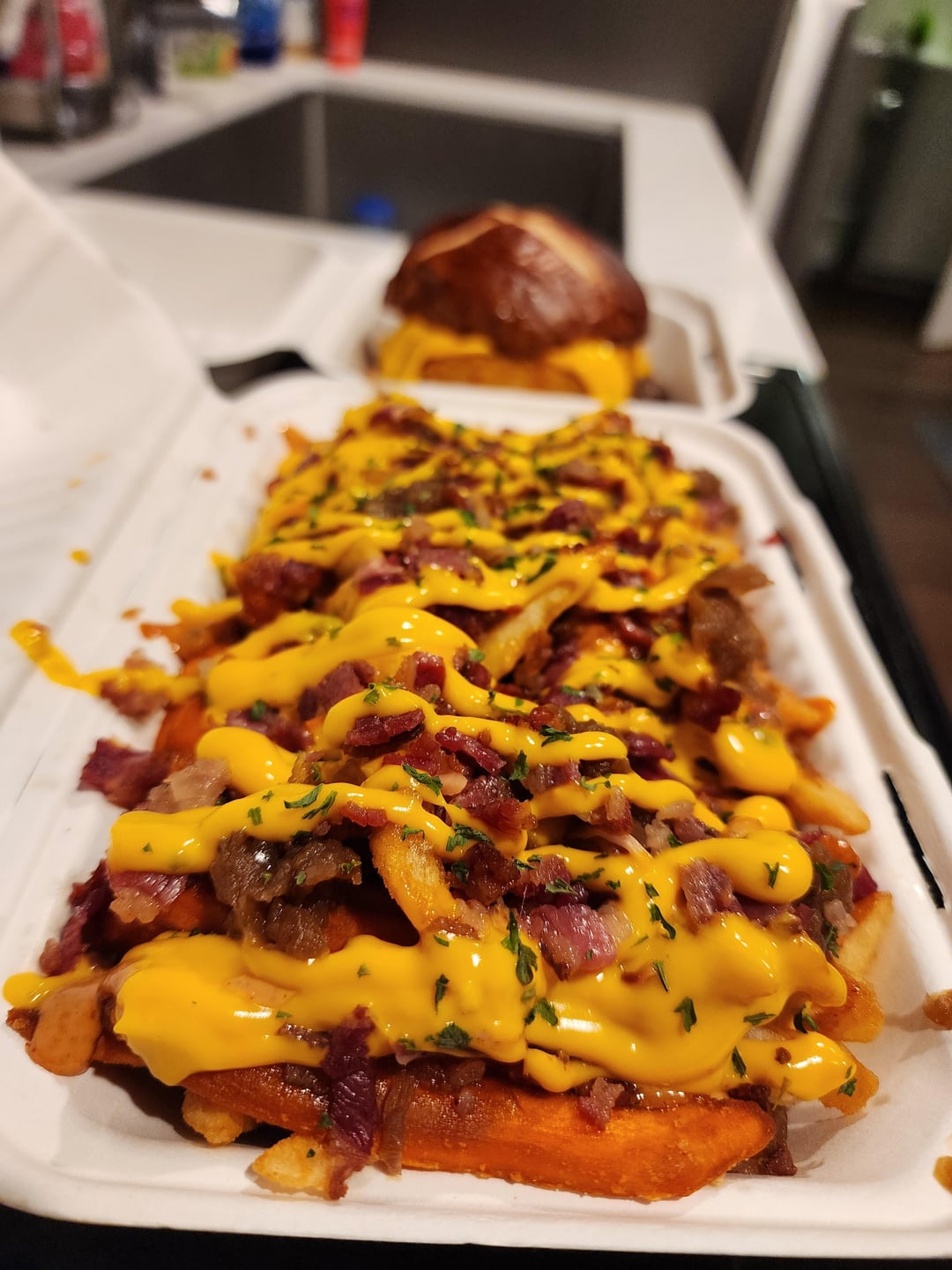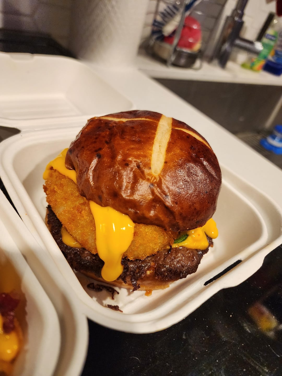 Picked this up for dinner tonight with some beer, looks great!jalapeños, cheese sauce, onion rings, smash patty, pretzel bun.The fries have halal bacon, cheese sauce, and onion jamby Toke-N-Treck 3 Comments Debits_equals_credit 2 weeks ago No thanks PinchedTazerZ0 2 weeks ago I haven’t tried any of the food out of that commissary kitchen or whatever it isThis looks pretty good! You can pick stuff up there? I thought all the businesses out of there were only delivery LovingTurtles 2 weeks ago That looks so fucking good.