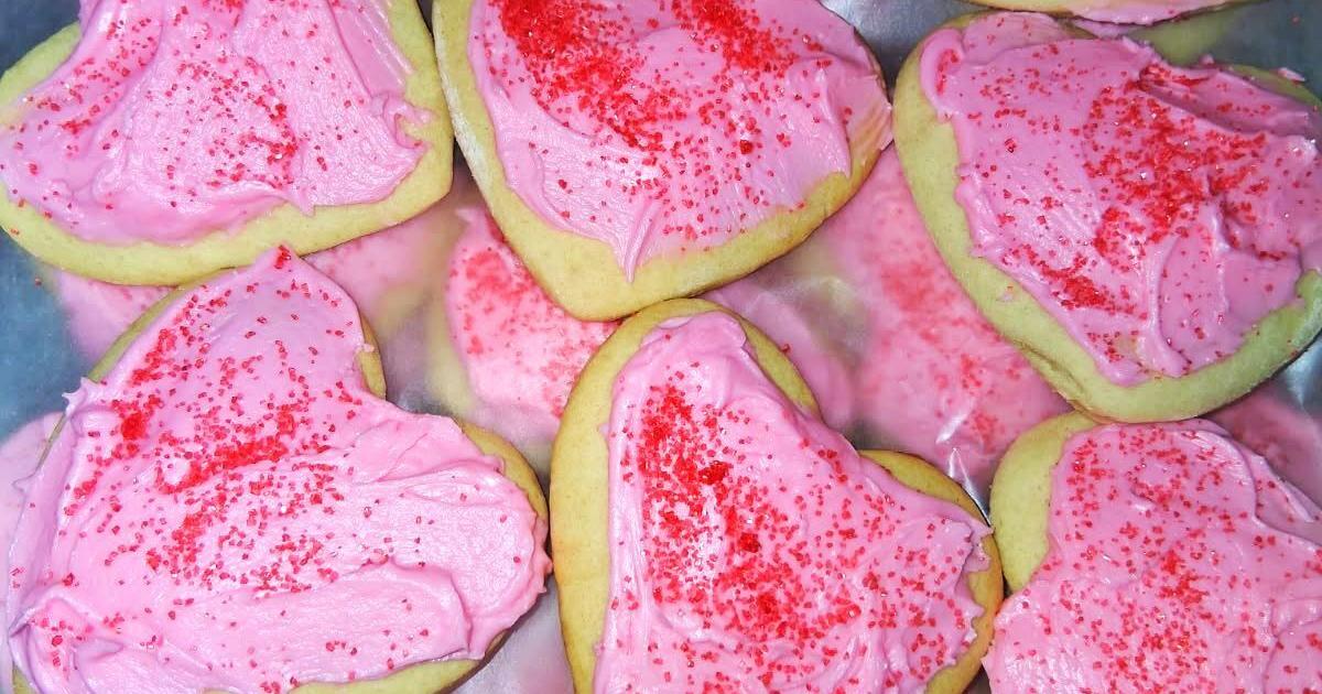 I made cookies that were passed around to the young children during the service. Since Valentine’s Day was the day before, I made heart-shaped cookies with pink frosting. I was holding Loretta and Dustin’s little 1-year-old Kylie when the cookies, crackers, and pretzels were passed out during the service. Kylie took her little fingers and picked off the frosting. Haha!