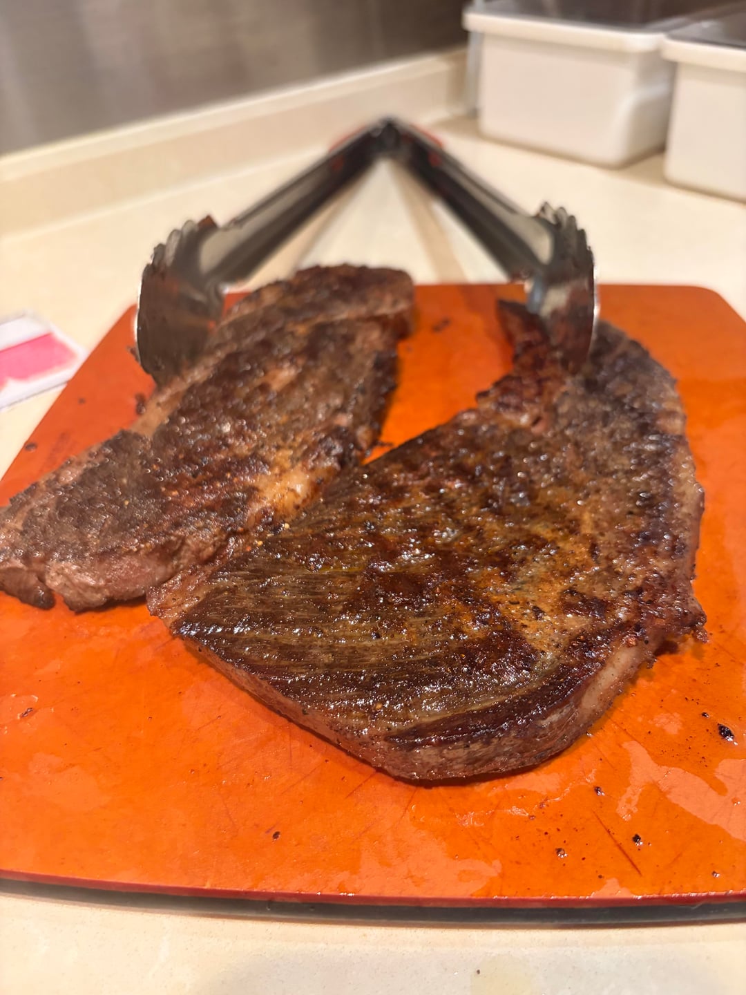 I never seen steak cut at 15 degrees but it looks so good op 😋
