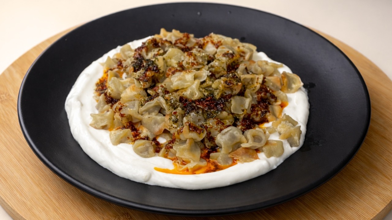 This traditional Turkish manti recipe uses firm dough carefully folded around a flavorful meat filling, then boiled and finished with creamy yogurt and spiced butter. A comforting and iconic dish from Turkish cuisine.