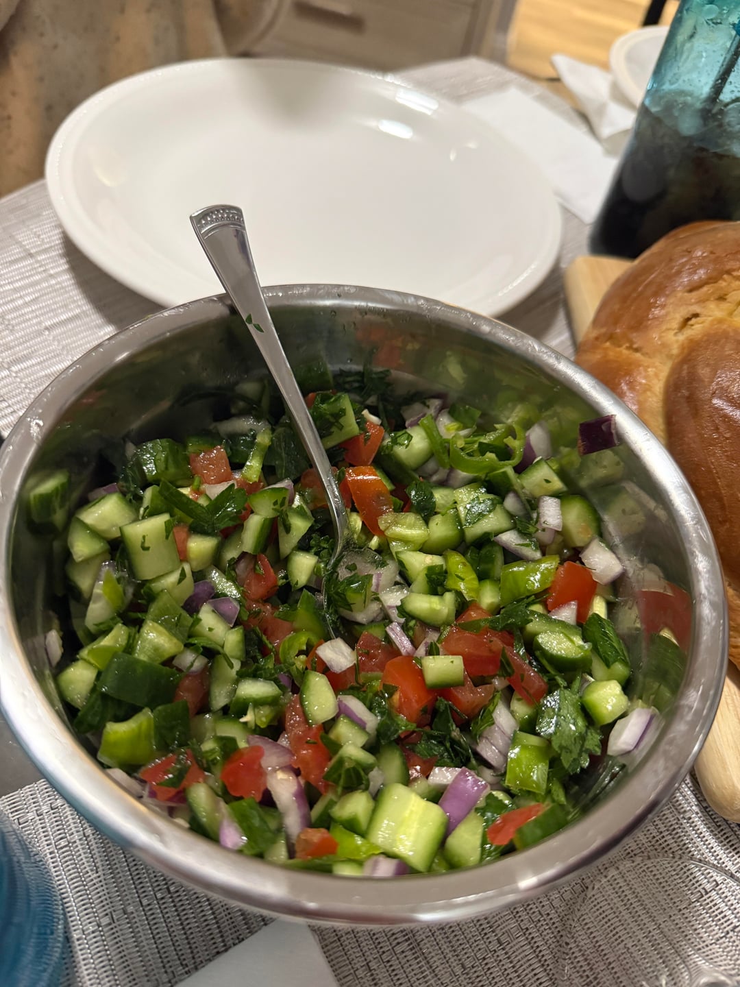 – Middle Eastern Salad with Cucumbers, Tomatoes, Red Onion, Chili Peppers, Parsley, Lemon & Olive Oil