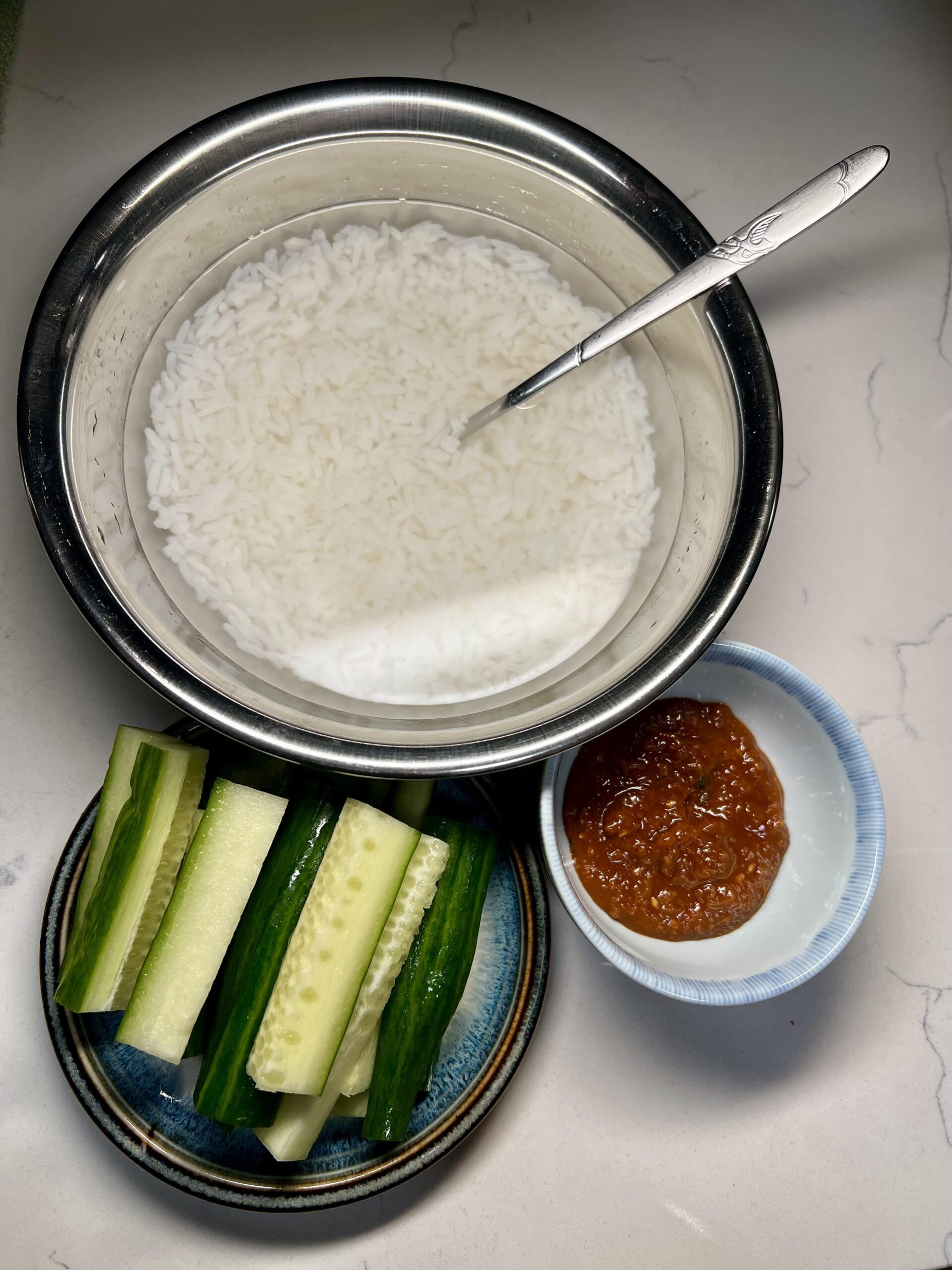 Ice cold water on piping hot rice
