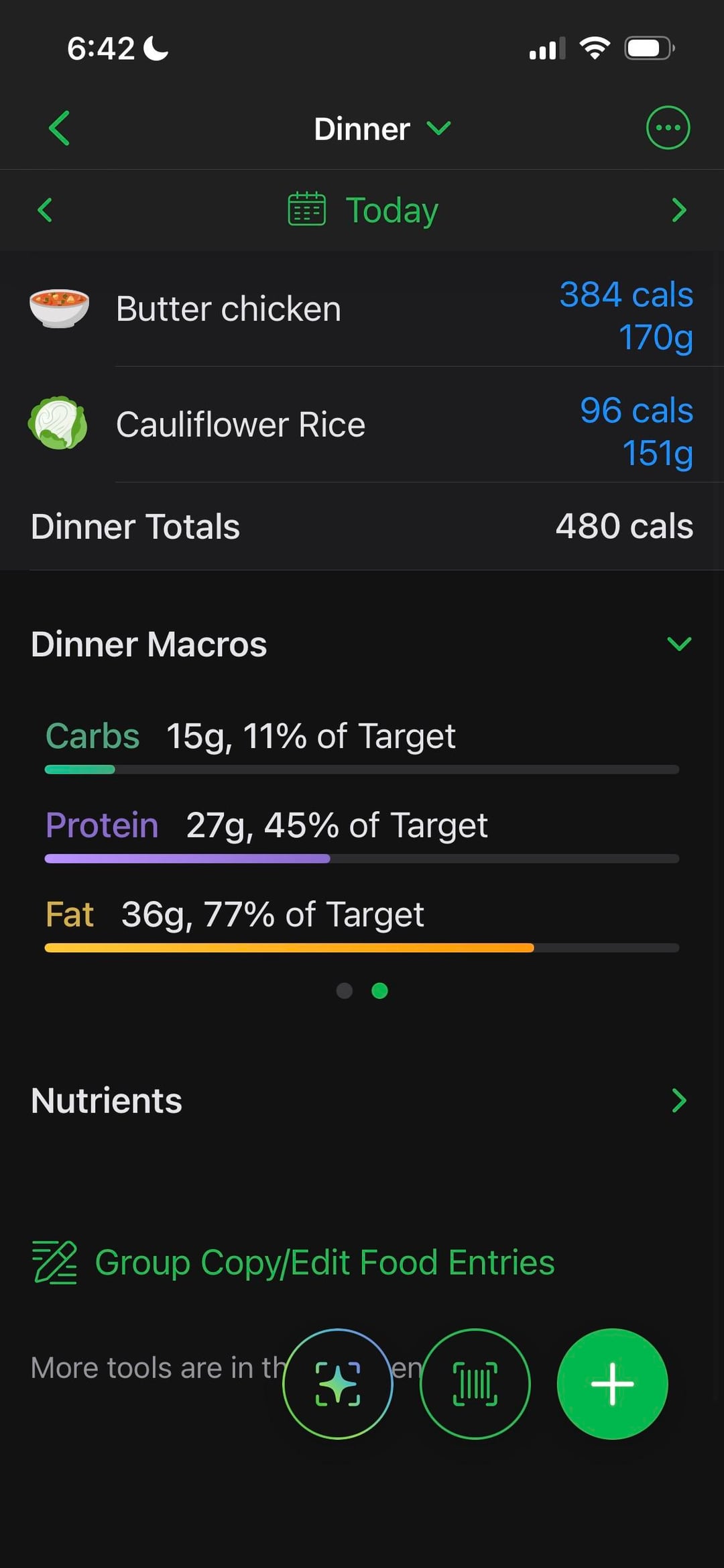Butter chicken on cauliflower rice (480 cals) soo good 😋