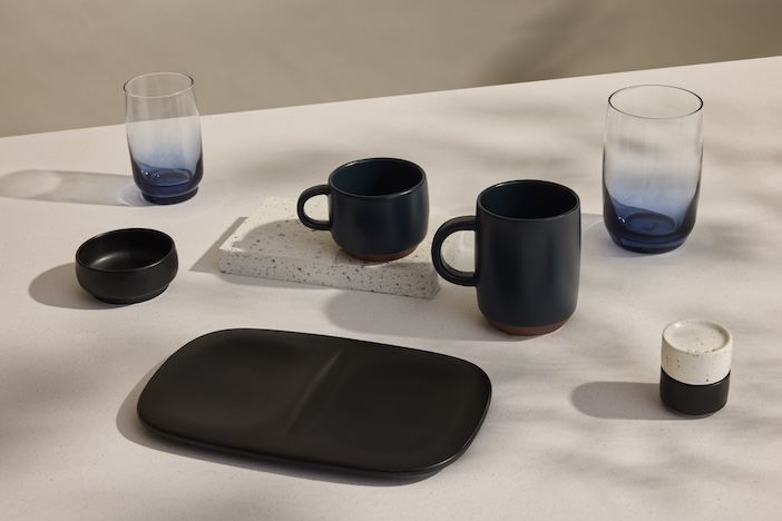 The porcelain pieces draw on the reds of terracotta and the deep blacks of Oaxacan clay