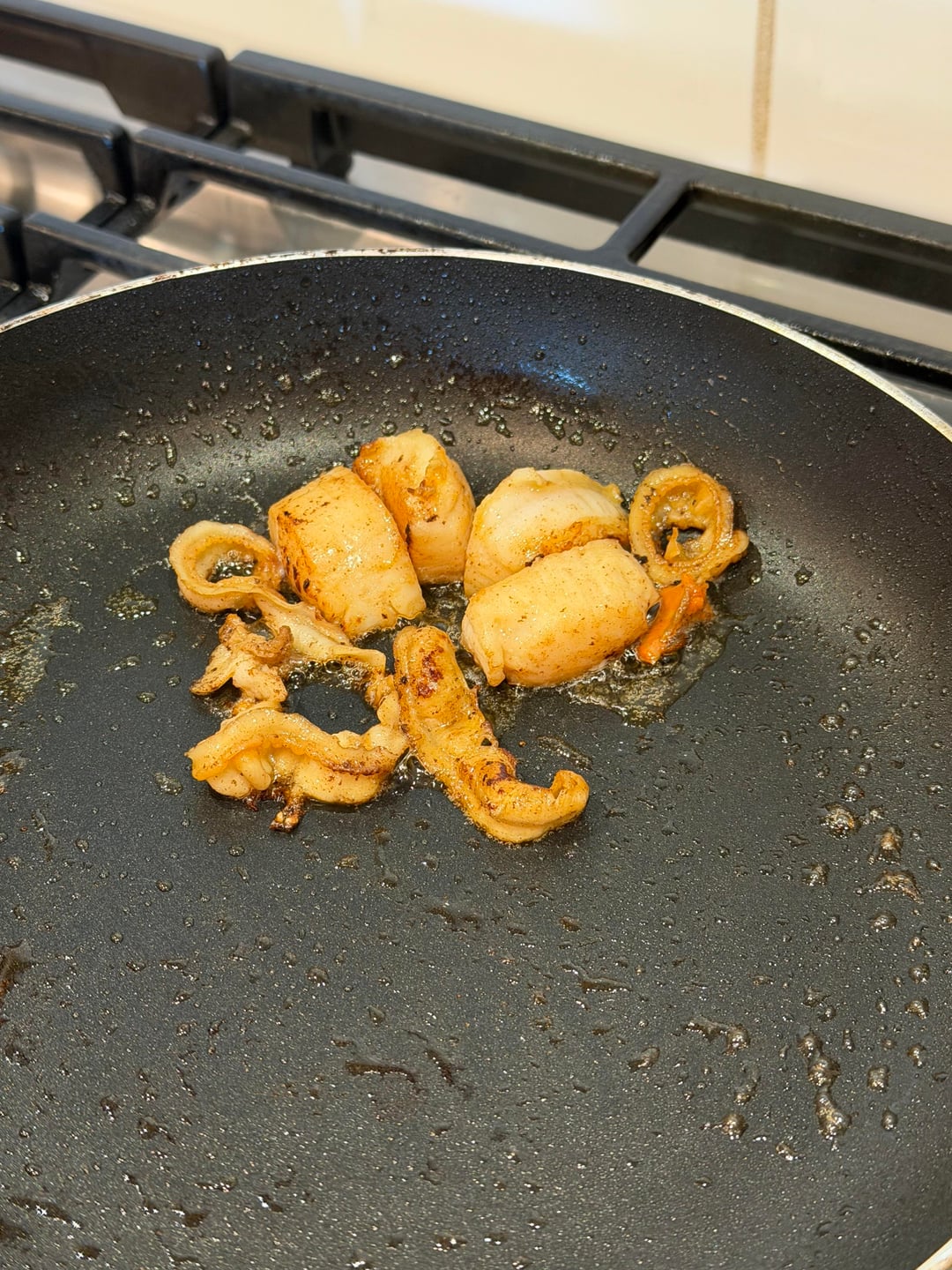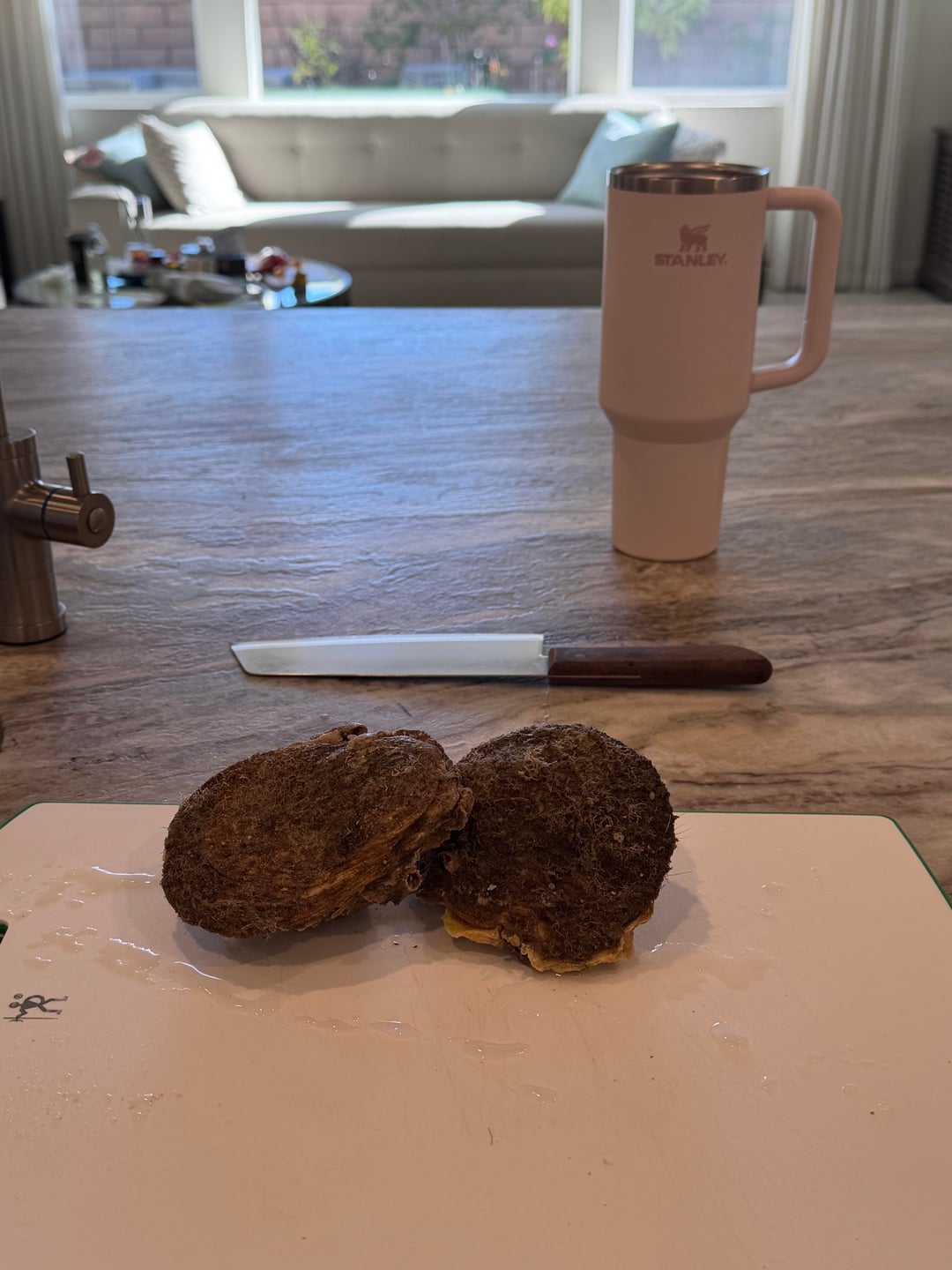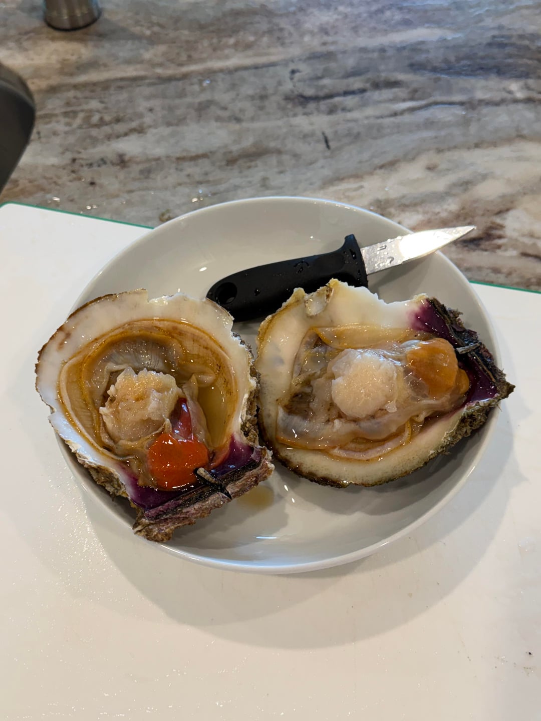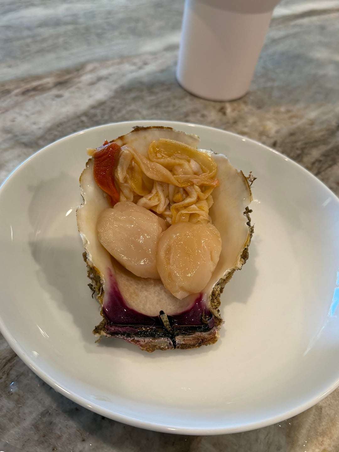 My friend gifted me two locally caught scallops here near Huntington Beach. Fresh. Delicious. I cleaned it then ate it with a green Vietnamese spicy seafood sauce. So good!! Catch clean cook.