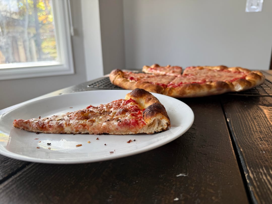 Made this one late last year and every detail was perfect for my tastes. Right after, I took a little break from very regular pizza making. I've still made quite a few in that time but none have quite lived up to this one. It was crispy and juicy and simple perfection. I ate the whole thing. Usually, the last couple of slices I eat I save the crust and give it to my golden retriever. Not that day. Sorry, June! Anyone else have one that is seared into their memory that they're still trying to replicate?