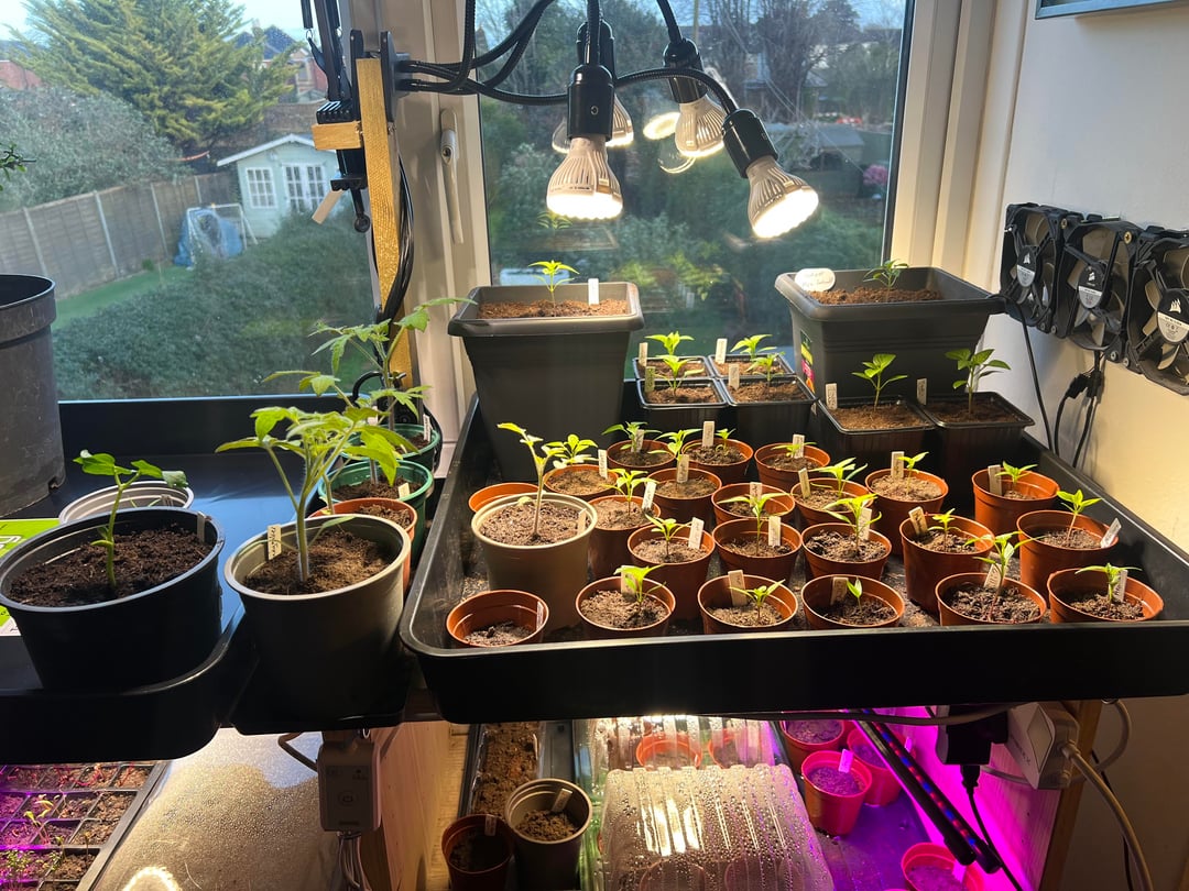 Week 6, most are doing well, managed to over water a couple of the superhots, so they are on a go slow, they grow at different rates anyway, think I’ll skip the mini 6cm pots next time as every up pot session comes with a bit of risk, lost a habernero to the move.