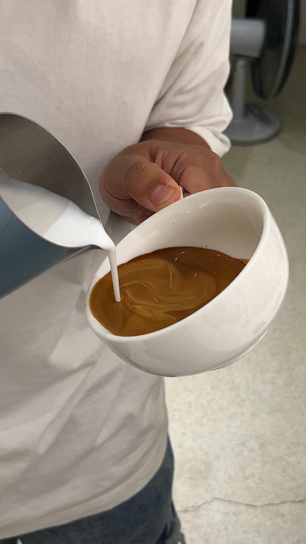Can someone explain something to me? At right around the 1.5 second mark, right when he’s about to start pouring the milk, the instant it hits the coffee it kind of flows away from the pitcher and the rest of the milk seems “drawn” in that direction in the cup almost like there’s some an undercurrent or something. When I do my pours, I often find that the milk settles just about where the milk pitcher’s beak is, which means I have to do a lot more forward and back hand motion to get the patterns, as opposed to this video showing very little motion (for the first ~5 seconds). I could use any tips!