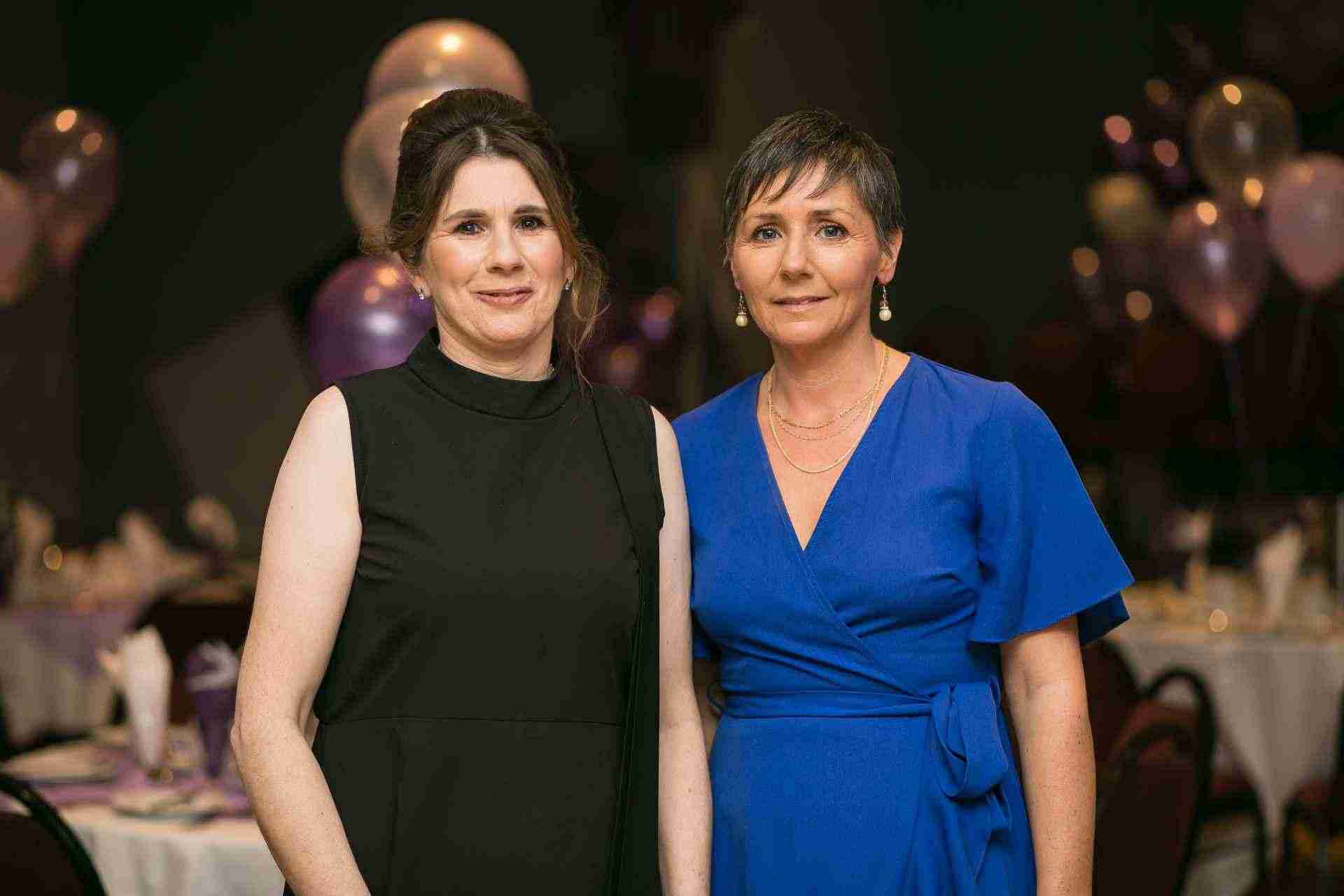 Pictured at the Northern Harps Dinner Dance in the Percy French Hotel, Strokestown recently were Annette McGrath and Debbie Leonard. Photo: Michelle Hughes Walsh