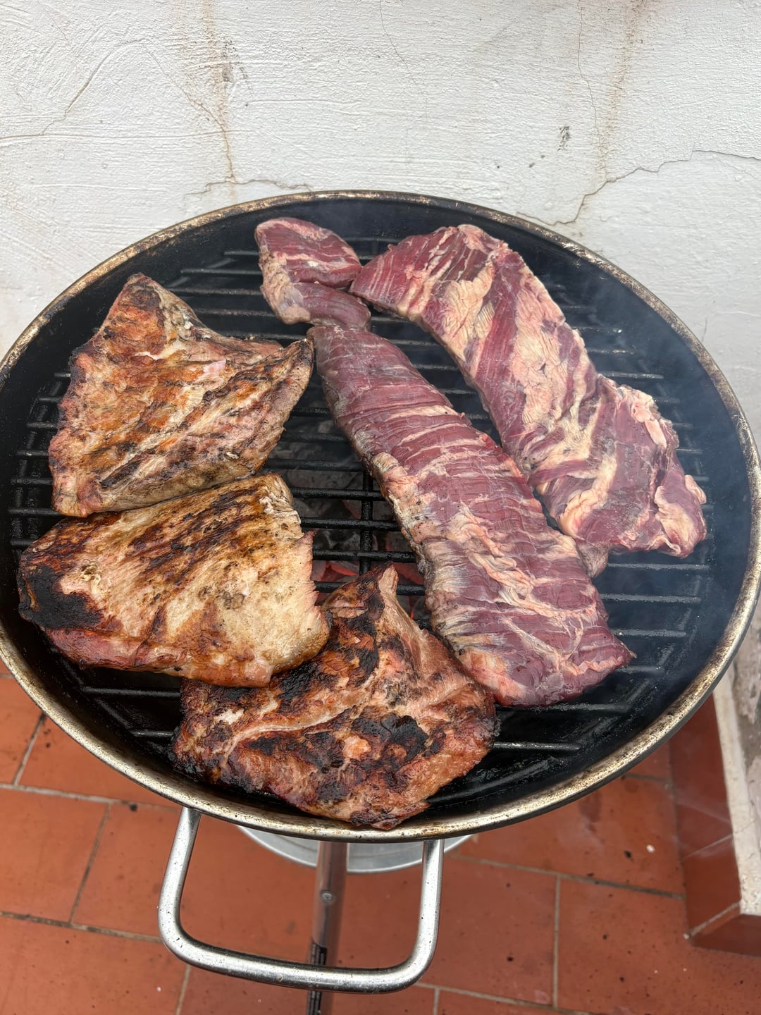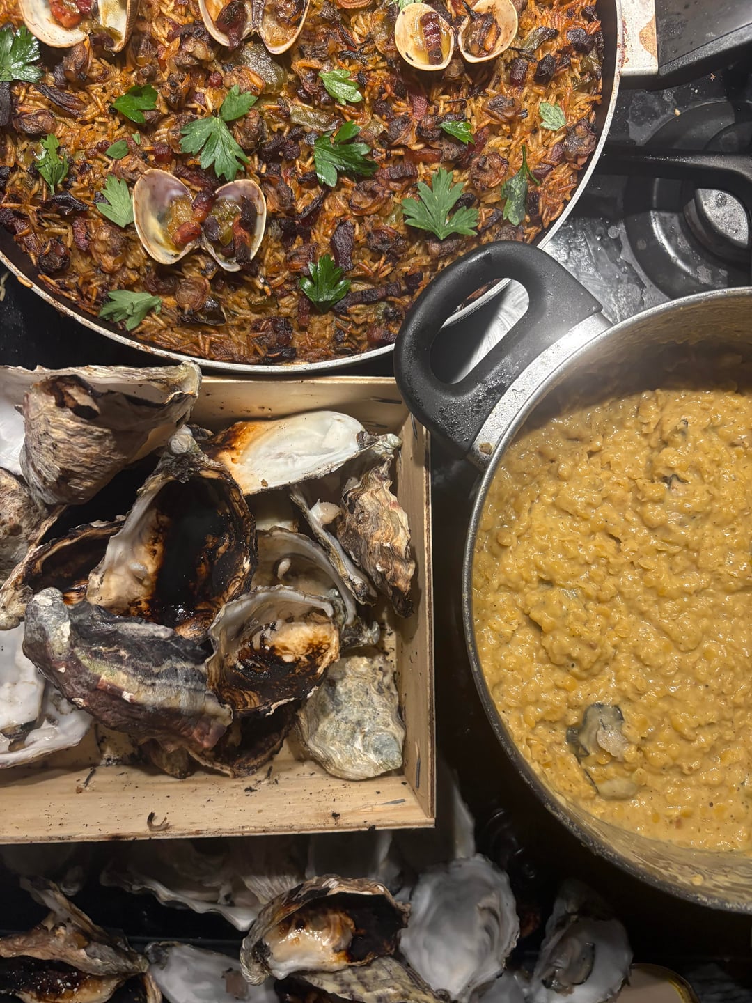 I got that ADHD + OCD combo – I absolutely cook better when I’m drunk. Had access to some great seafood, veg and protein so got busy with a langostine/mussel/clam/iberico paella, some grilled oysters, pork ribs, chorizo and entrecôte (ribeye). There was a little Weber and chargrilled some skirt and pork too. There’s two that don’t eat red meat so made them lentils with some of the oysters/juice. Cooked half the stuff inside then moved outside; drunk peaked during the paella and pictures look like, well, a drunk person took them. Not pictured is a beat salad