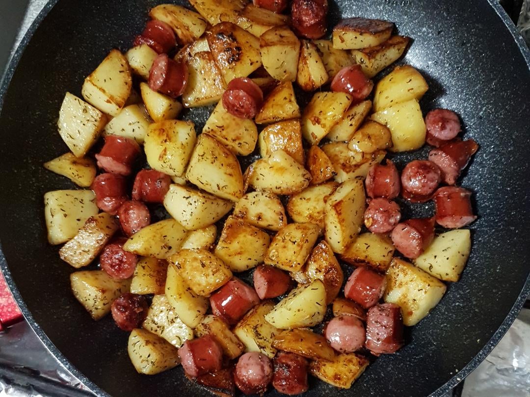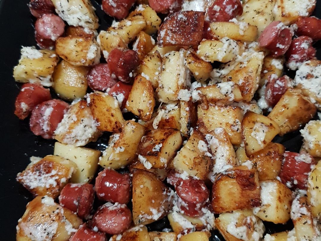 1. Butter cooked fries and sausages with garlic, thyme and Pecorino Romano. 2. Tried making 18th century cheese soup and definitely ended up with a porridge.