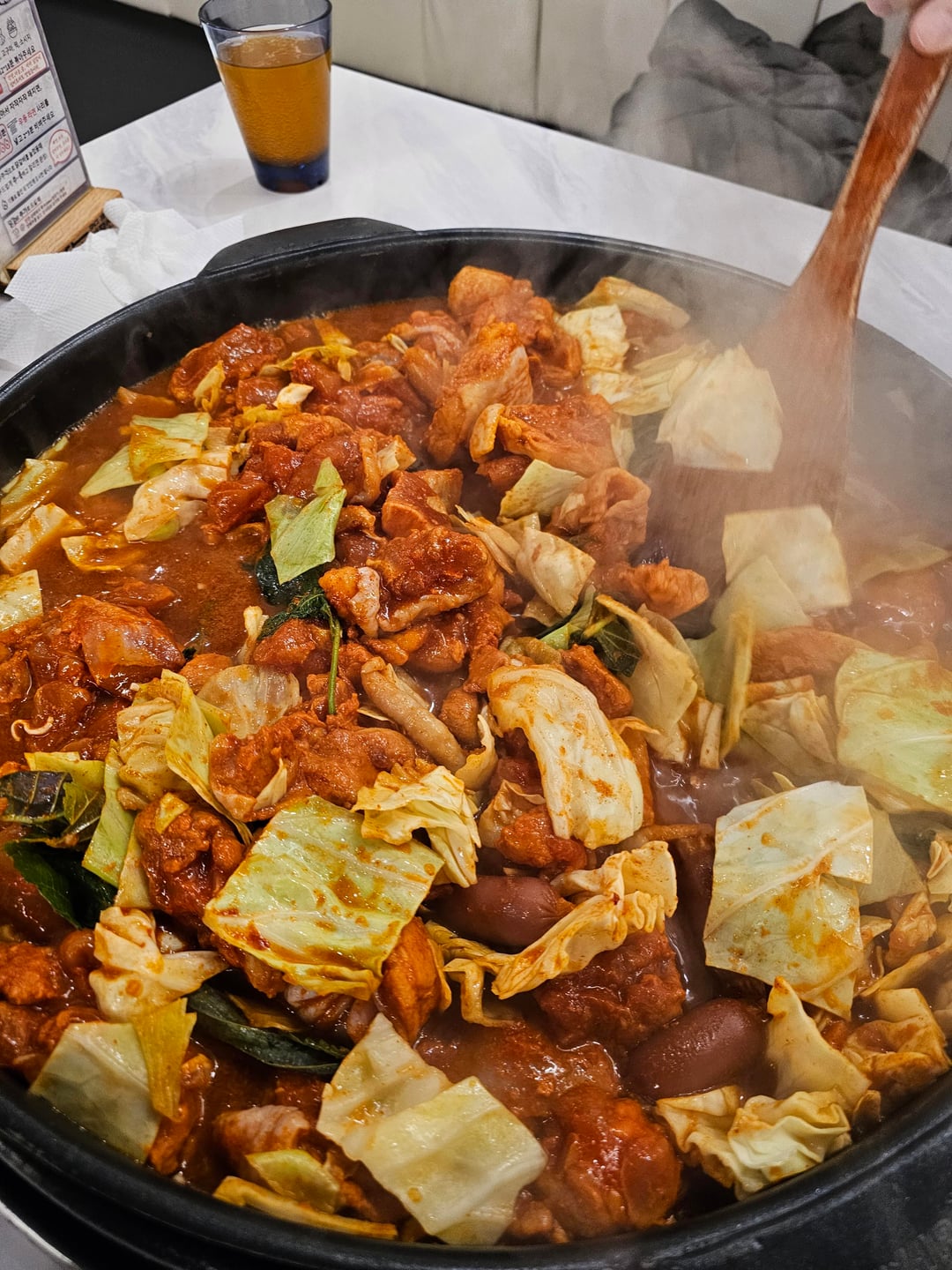 Dakgalbi. In Korea, they create magical food with chicken, vegetables, and gochujang-based seasoning sauce.