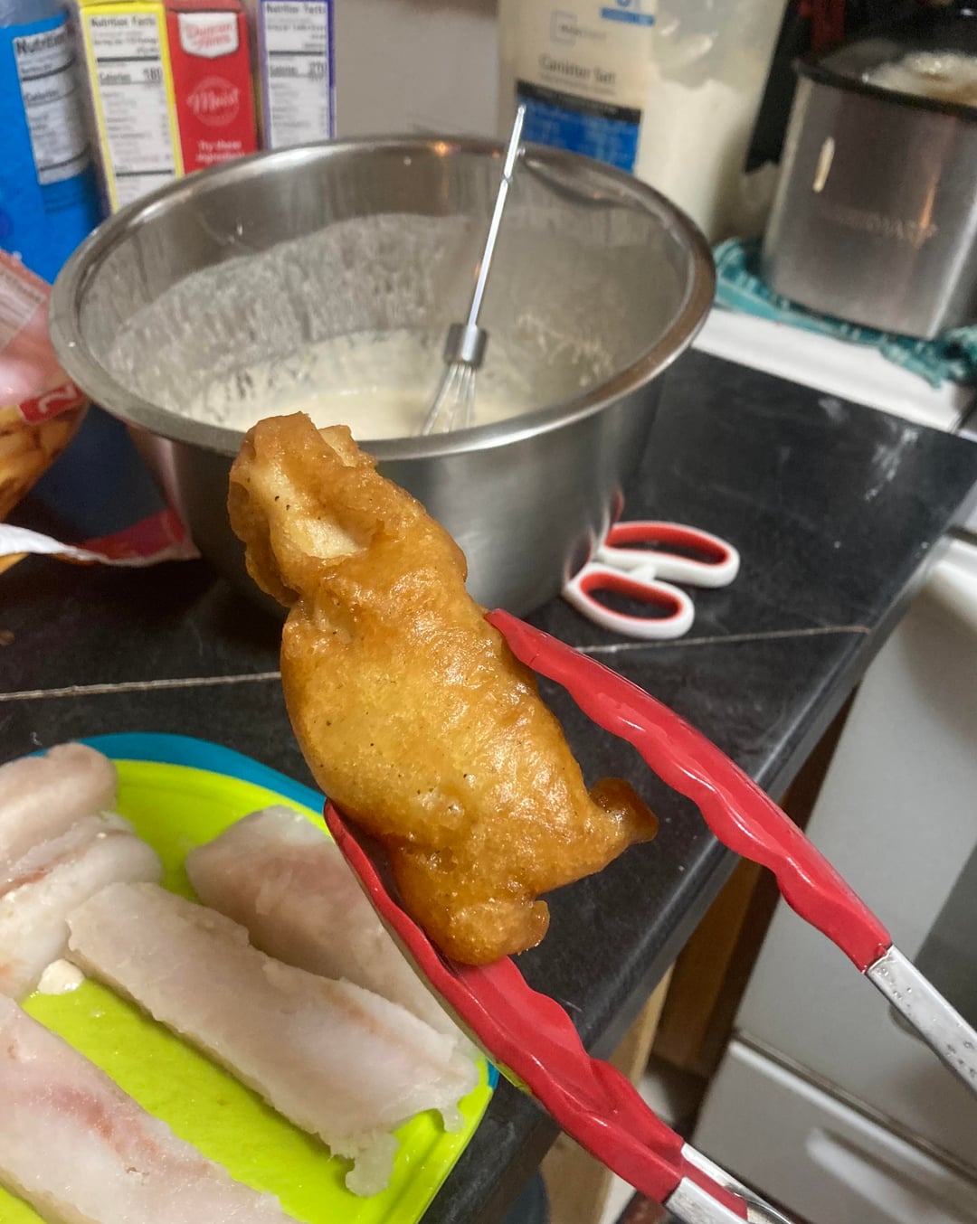 Yo the batter looks on point! A popular local fish and chip shop said they use waffle batter somehow and its always awesome.