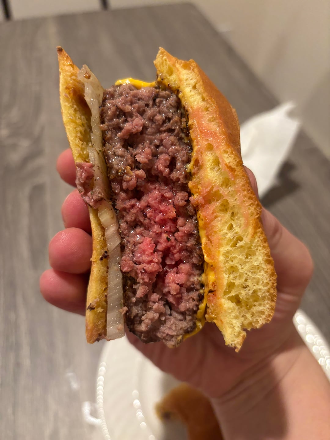 The faster you eat it, the more friction made and will cook the burger going down