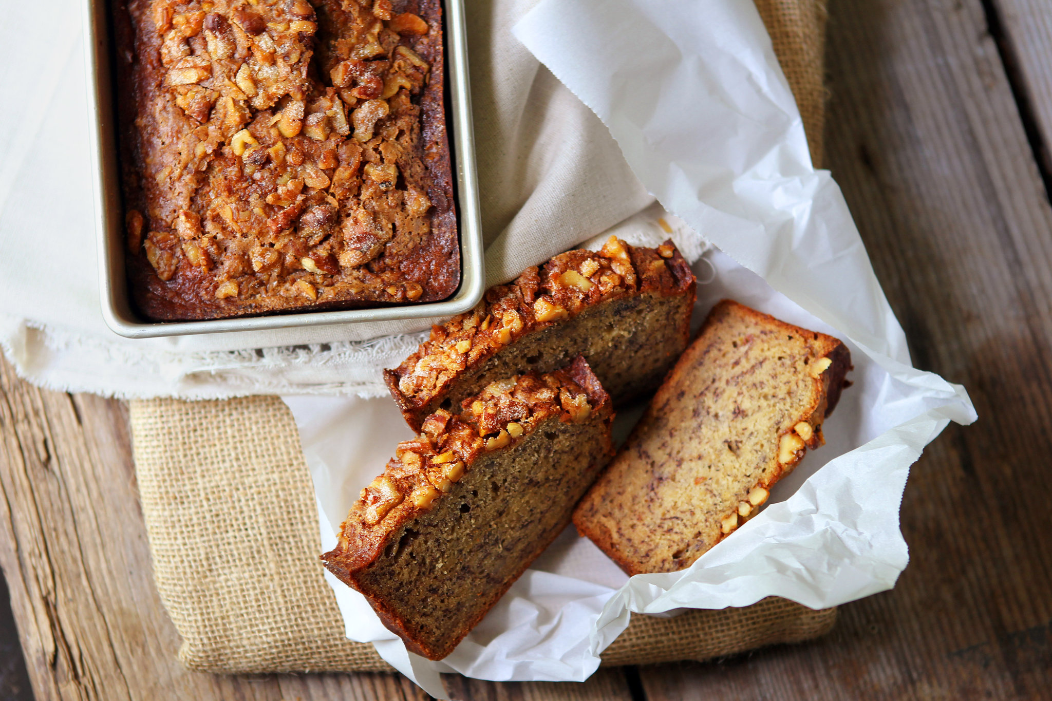 - Stir dry ingredients together and mix into banana mixture just until combined. Pour into prepared pan. If making topping, stir ingredients together and sprinkle over batter.