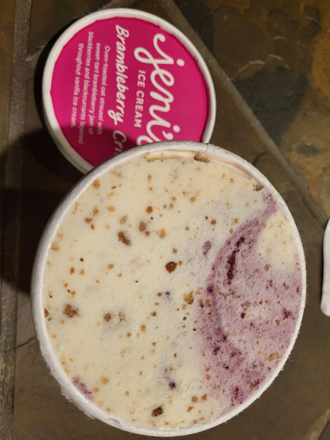 Brambleberry Crisp has a lot of flavor intensity without being overwhelming, they're balanced, and taste/feel high quality. Plenty of mixings. You can taste each flavor dancing with one another in harmony. I can see why Jeni's is beloved and this flavor in particular. Nothing tastes even slightly processed or artificial. Like a ice cream master home person just went to a local farmer's market, bought stuff and made ice cream from it. I'm impressed and there was a lot of hype.