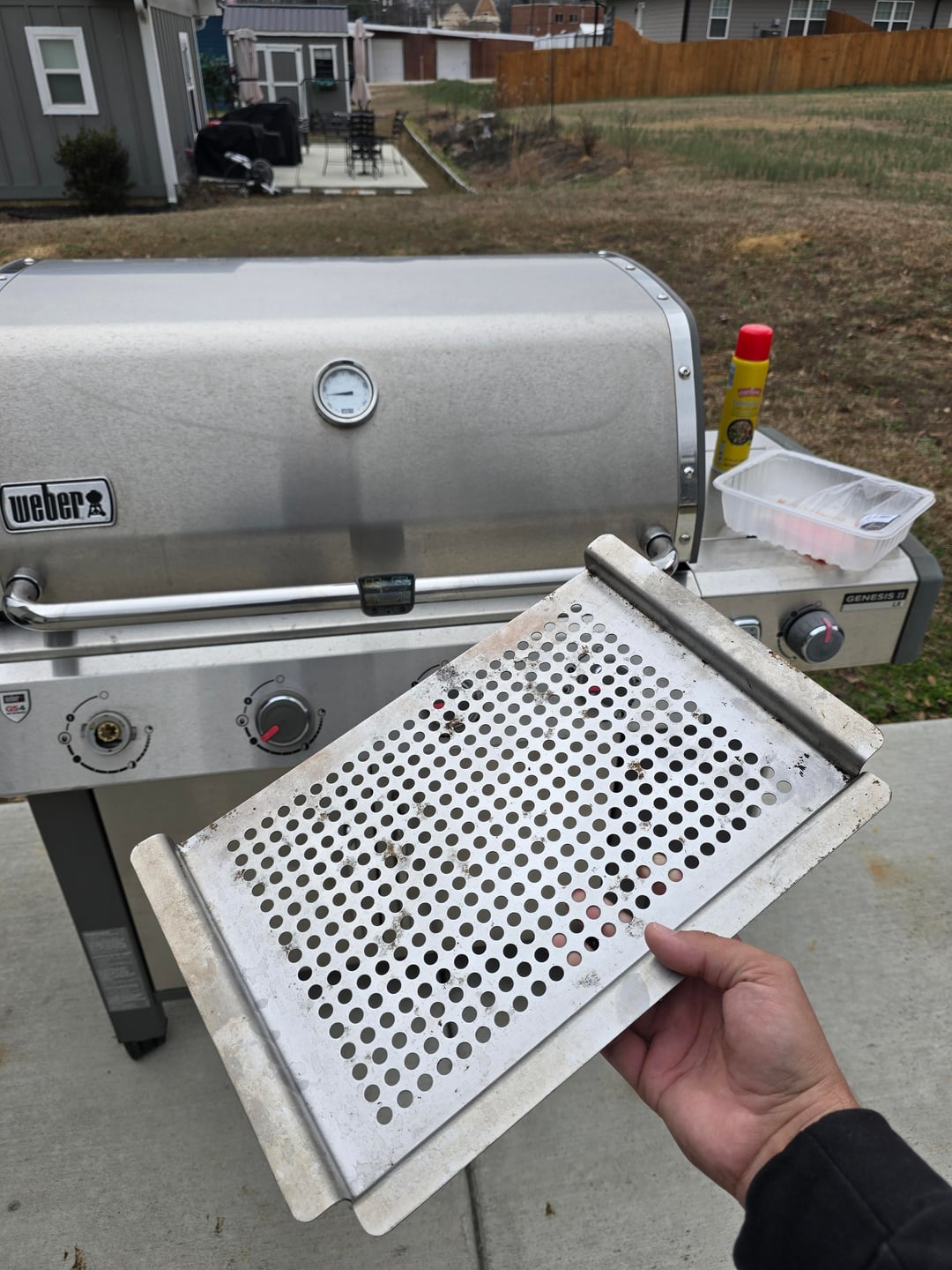 any idea where this is going ? how about this tray? the tray is to small to replace a grate or sit on it. bought the grill used and those parts were inside the cabinet.