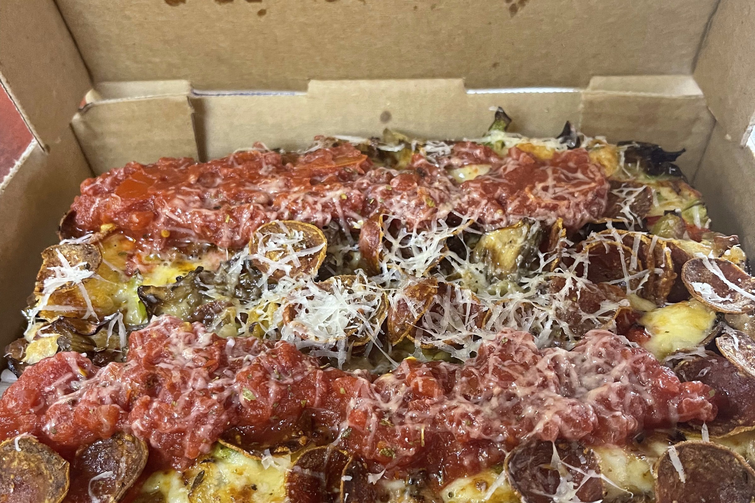 Rudyard’s has served Detroit-style pizzas for years, but now Houstonians can get a wider variety of daily options at Gold Tooth Tony’s Heights, Montrose, and Bellaire outposts. Sink your teeth into the thick dough that’s a delightful cross between focaccia and sourdough, and revel in the different toppings and combinations. The 181 Heights — an ode to the now-shuttered Pi — is loaded with arugula pesto, almond, chili flake, lemon zest, and fennel pollen, while Sebastian’s Big Idea is a cheesy and fun combination of Spam, togarashi roasted pineapple, and furikake seasoning. You can’t go wrong with a more classic pie like the pepperoni. Try some of its “not pizza” items, like its pizza tots or General Tso’s chicken wings with a spicy ranch. Know before you go: Chef Adam Bitner also offers a Houston-style pizza, a delightful fusion of New York and Detroit-style pies.