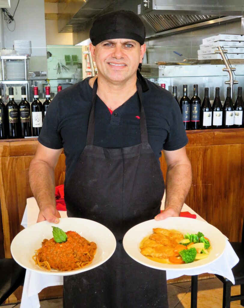 Rocca Trattoria’s Chef Moises shows off his popular pasta bolognese and chicken Francese.
