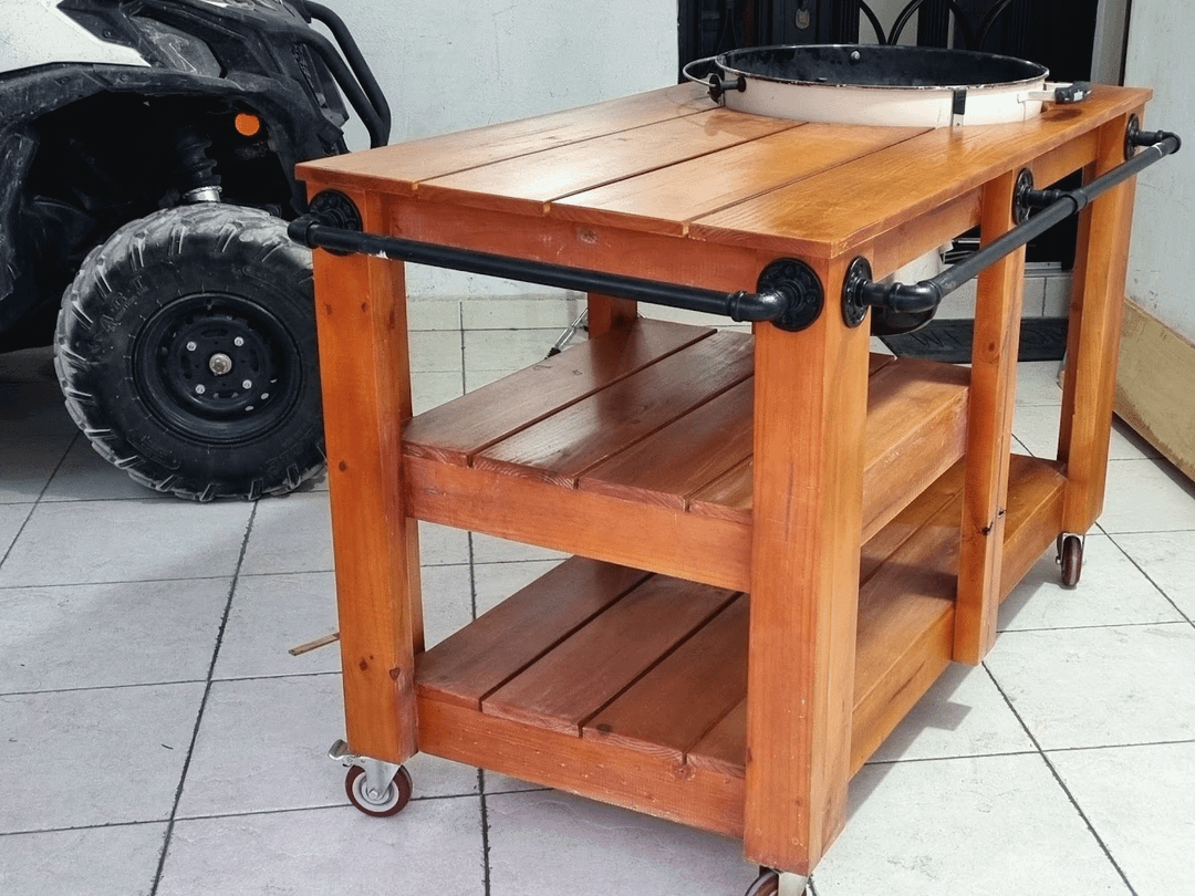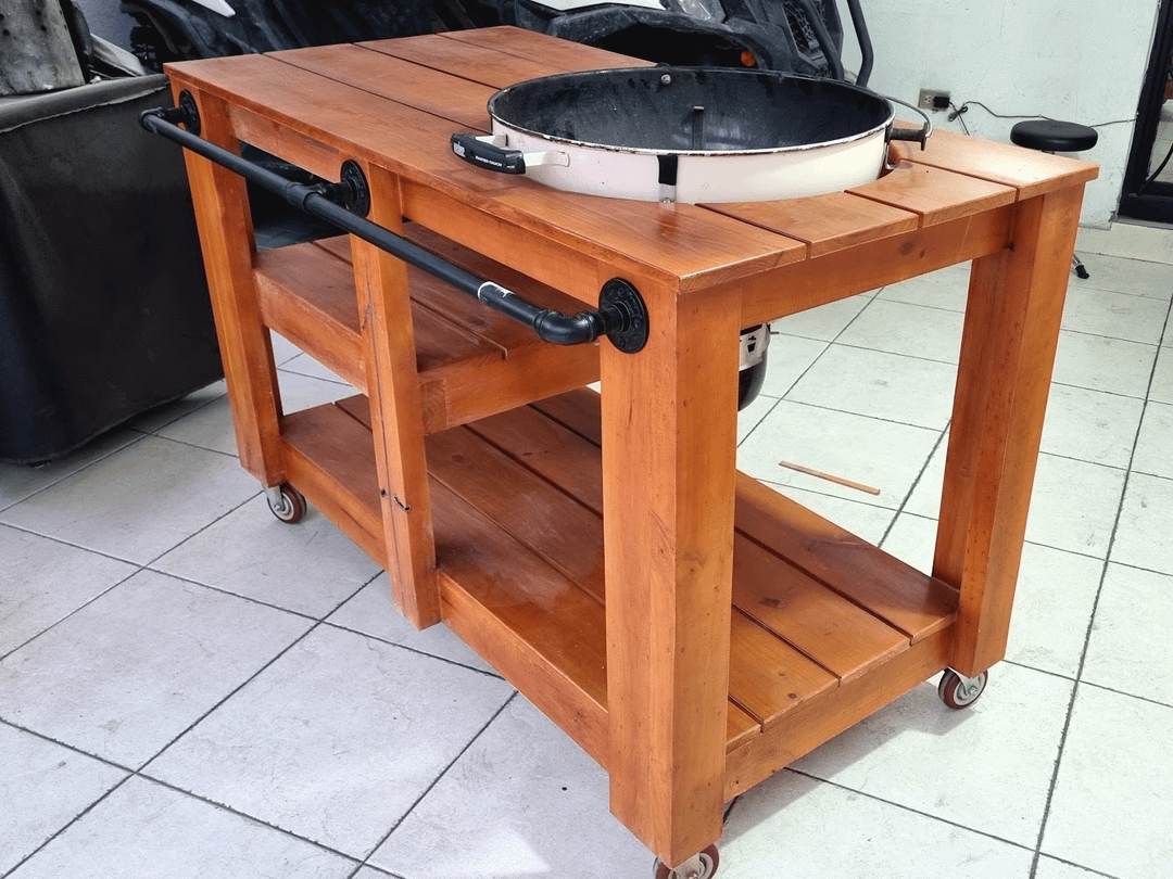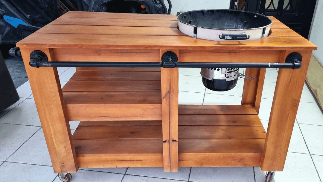 Looks great! What did you use as kettle brackets? Also curious how much gap you left between the wood and the kettle.