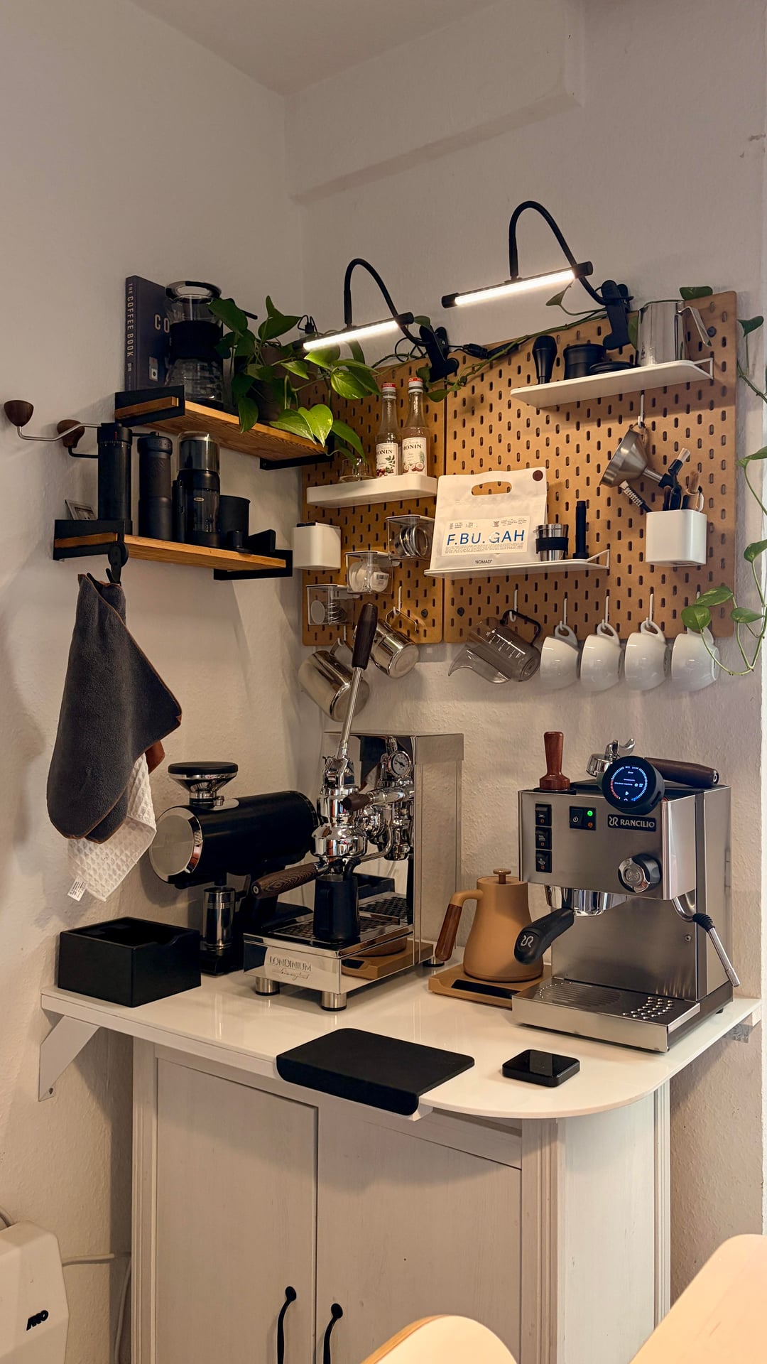 I think for my space I would prefer the old one tho. I love the plants and the cleaner, less cramped aesthetic. Making espresso is quite exhausting for me, so less clutter and the colder, brighter lighting help me stay focused.