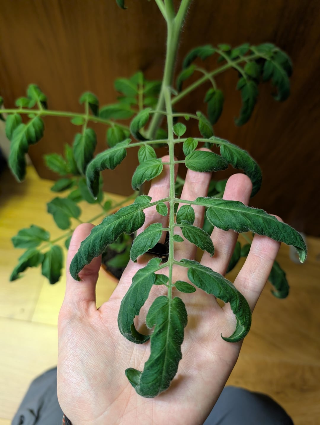It has very open foliage and structure, relatively stout (must be part of the micro parentage), and seems a little hairier and have a blueish tinge (probably from Abrikos). Very excited to see the F1 fruit, I anticipate it will be a pink salad tomato type, nothing special, but I will get some great seeds for the upcoming season! My goal is to breed a fuzzy micro tomato, and I've some other breeding projects I hope to incorporate with this one.