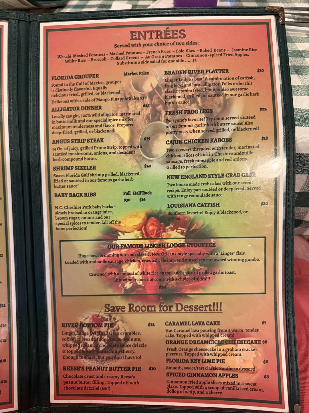 Braden River Platter for the Win at Linger Lounge Sarasotaby WhiteRhino19 15 Comments Key-Market3068 2 weeks ago Sure looks Tasty!! eugenesbluegenes 2 weeks ago I need to try some fried frog legs. The only way I’ve have them prepared was in spicy red oil at a Chinese place. Those were delicious. ForeverCapable 2 weeks ago I’ve never had either but I’d love to try!! Looks delicious Drigg_08 2 weeks ago Looks great. Fried catfish is boss. Not seafood though Jutch_Cassidy 2 weeks ago Those greens look great Mockingburdz 2 weeks ago Smash.https://preview.redd.it/iy3u9a4a76mg1.jpeg?width=1206&format=pjpg&auto=webp&s=215d9ea94b2cf94205c0d8dbd65a22df30c0fab9 Independent-Ad-9812 2 weeks ago Brown kursys 2 weeks ago I want a platter of stork ankles, an old cellar door, a possum spine and a human foot. devoduder 2 weeks ago Looks delish, just had some great gator bites at an oyster bar in Florida recently. Typical-Charge6819 2 weeks ago I was gonna say it looked a bit bland until I saw it was an RV Park.Best fried catfish ive had was down a dirt road through a family farm Dependent-Hurry9808 2 weeks ago Where yall boys from in the world? – lieutenant Dan“ALABAMA SIR” HighlightUpstairs777 2 weeks ago I love gator, just like a chewy chicken Traditional_Isopod80 2 weeks ago Where is this? Later_Hater_9671 2 weeks ago I would eat everything on that menu in one sitting. and then go back for seconds. Snap-Pop-Nap 2 weeks ago None of those things are from the sea …But they do look delicious!!! 😋