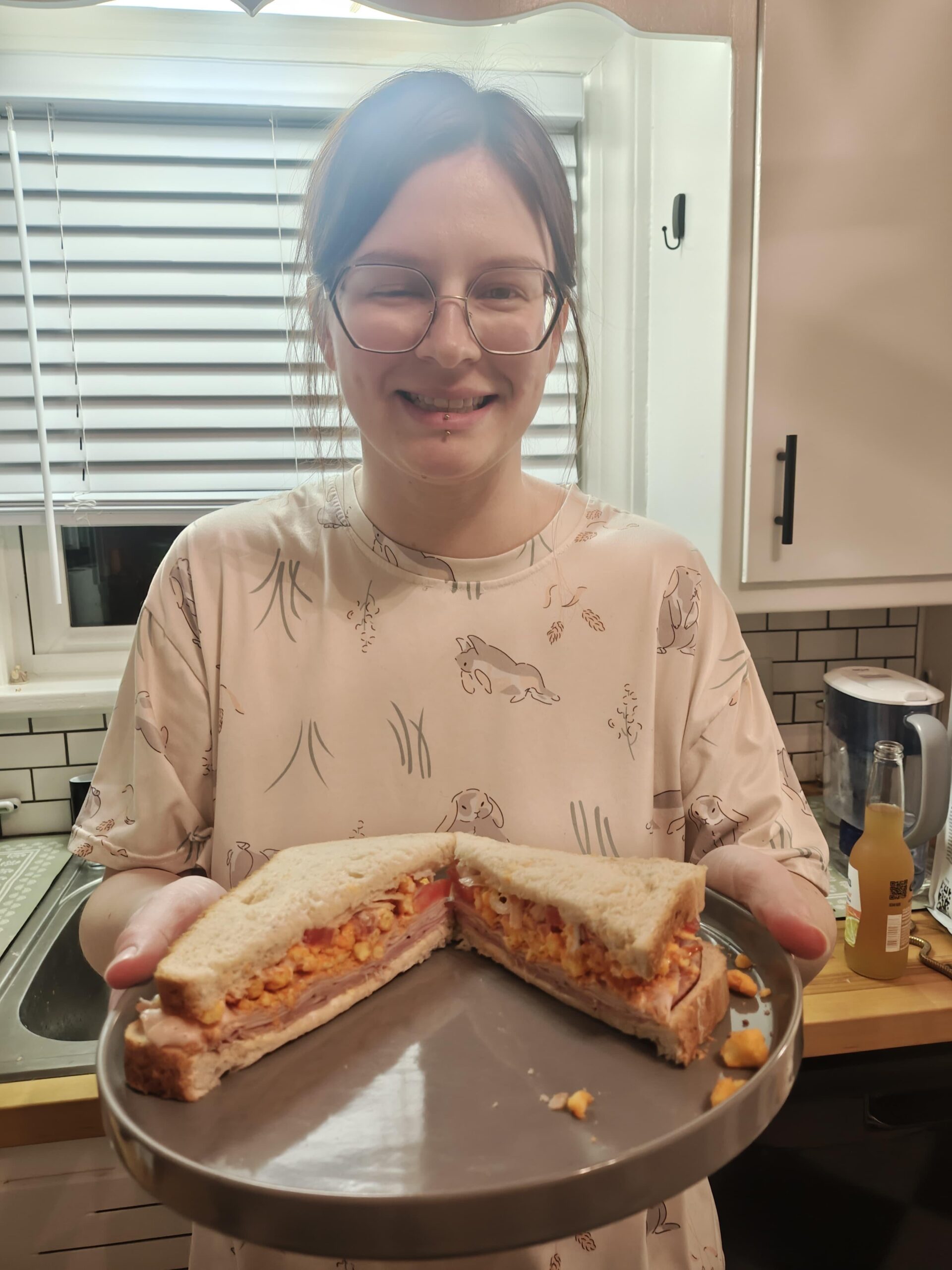 Gotta take pride in your sandwiches! Unfortunately it seems he caught you mid expression change haha.