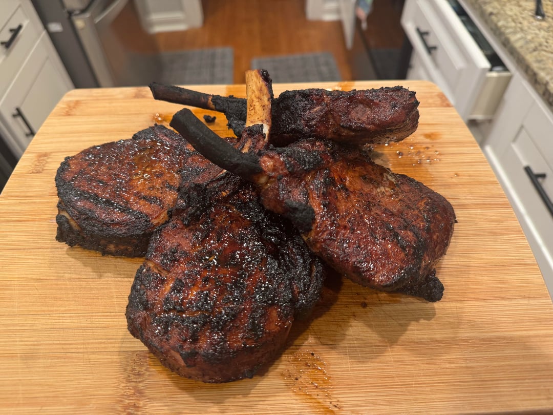 Smoked then seared pork chops