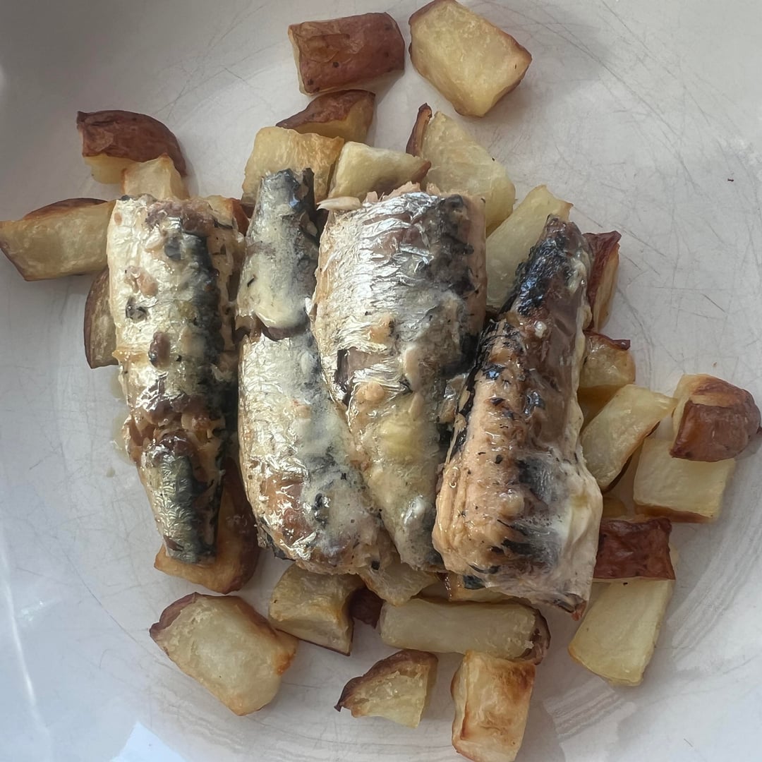 For breakfast I had buttered sardines over air fried potatoes. I gently heated the sardines up in a pan and then placed them on top of the potatoes. Drizzling with the remaining butter from the pan and tin. I was not expecting it to be as delicious as it was! An amazing tin for sure