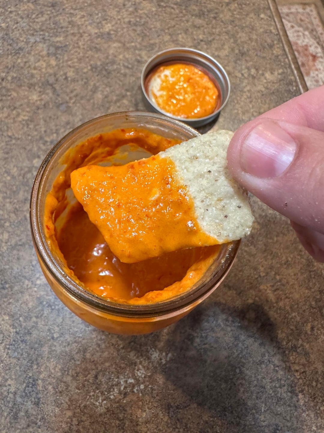 Recipe is 3 Roma tomatoes, 3 cloves garlic, half white onion, all roughly chopped and seared in cast iron with olive oil. Half way through that I added 20 chile de arbol and sautéed them till soft. Added all ingredients to a blender with some salt and citric acid, added water to get a better consistency. Blend it all then transferred to a bowl and used an immersion blended and added olive oil slowly to get the creamy aspect of it to where I wanted it. Spicy and toasty and extremely tasty.