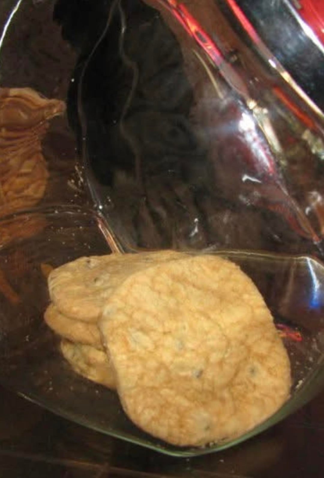 These aren’t your typical chocolate chip cookies. If anything they’ve always reminded me of a chocolate chip cookie/sugar cookie hybrid. They (used to be) almost white in color, huge, firm yet soft, very crinkle-y, and super sandy like a chips ahoy cookie! I’m talking crumbs all over your hands when you touch them. The chocolate chips are mini (or crushed up?) and were never melted/gooey. These cookies aren’t paper thin or super thick/puffy. Sometimes when my mom bought a sleeve of them, the cookies would be square. I learned that’s from when cookies spread too much and touch each other on the pan.