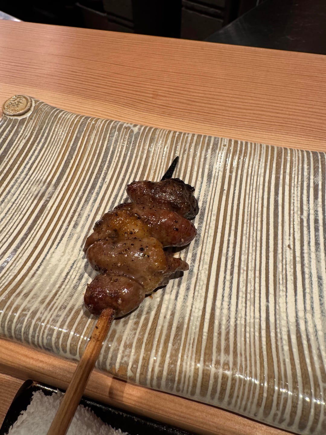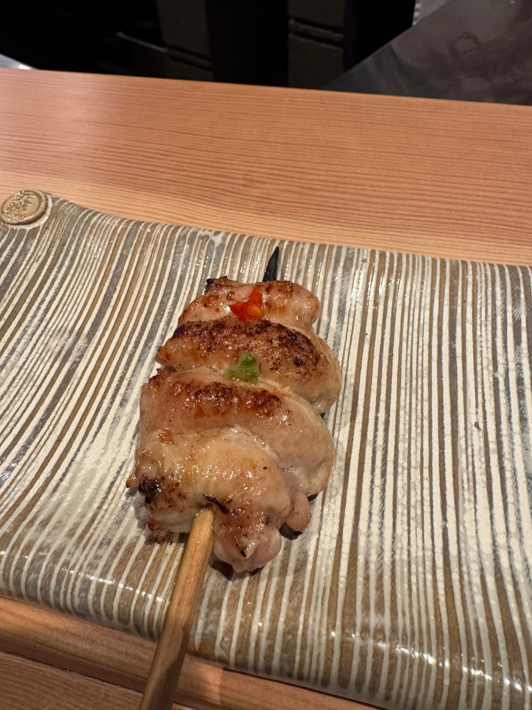 The grilling technique is subpar and there is no defining crispiness of chicken skin on various skewers. Also for chicken heart there is no distinct hardening of exterior membrane which is key for hatsu. Also due to food regulations, the chicken itself is often overcooked and not served as it should.
