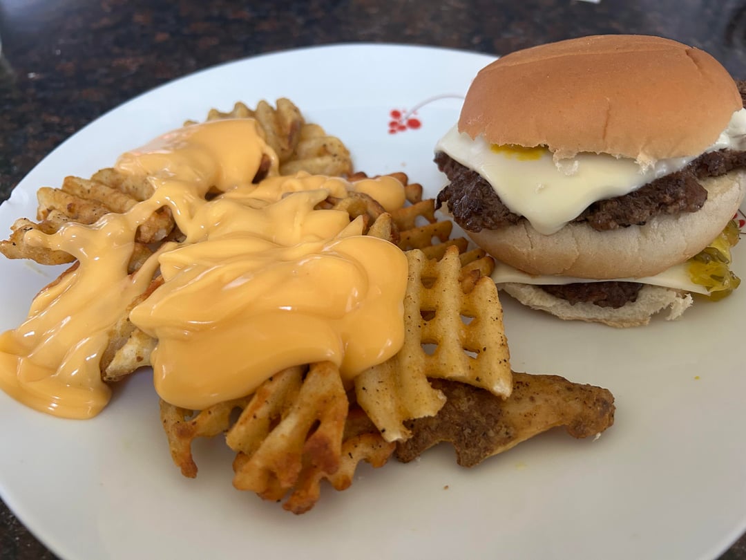 Classic double decker cheeseburger with cheesy waffle fries.by Scouter197 6 Comments DefiantNX-74205 3 weeks ago Hmmmm, das sieht lecker aus 🤤😋 MagazineDelicious151 3 weeks ago Looks great NASB95 3 weeks ago I got heartburn looking at this, not kidding. Looks good though SCSteveAutism 3 weeks ago Middle bun thiccc SleevedRedElk 3 weeks ago That looks like a LOT of bread B4sketCas3 3 weeks ago What white cheese is that?