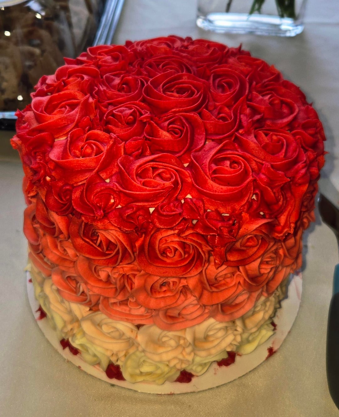 4 layers with cream cheese frosting on the inside and butter cream frosting with grenadine for the rosettes.by Noheifers 6 Comments dogfur 2 weeks ago Very pretty cake! Wow – haven’t seen blood red at a baby shower before… ZealousidealPhase543 2 weeks ago I think I would punch anyone who tries to cut into this! JennaJ85 2 weeks ago Pretty cake and beautiful rosettes! You did a great job! GoshlynnGacha3004 2 weeks ago That’s beautiful, Noheifers! 😍 Difficult_Leg_7693 2 weeks ago Great job LeCorbeau1722 2 weeks ago It’s very lovely and elegant!!