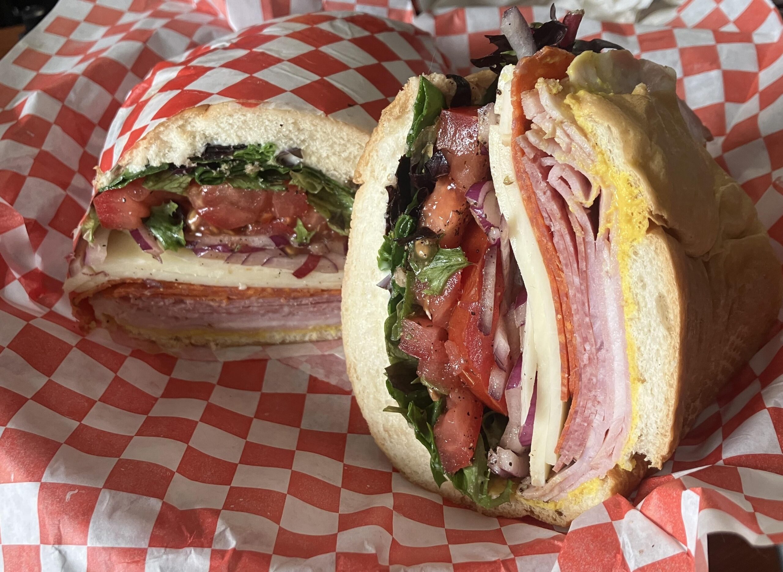 Ham, salami, sandwich pepperoni, provolone, red onion, tomato, spring mix, then evoo/balsamic and oregano to dress plus mustard/mayo on the bread.