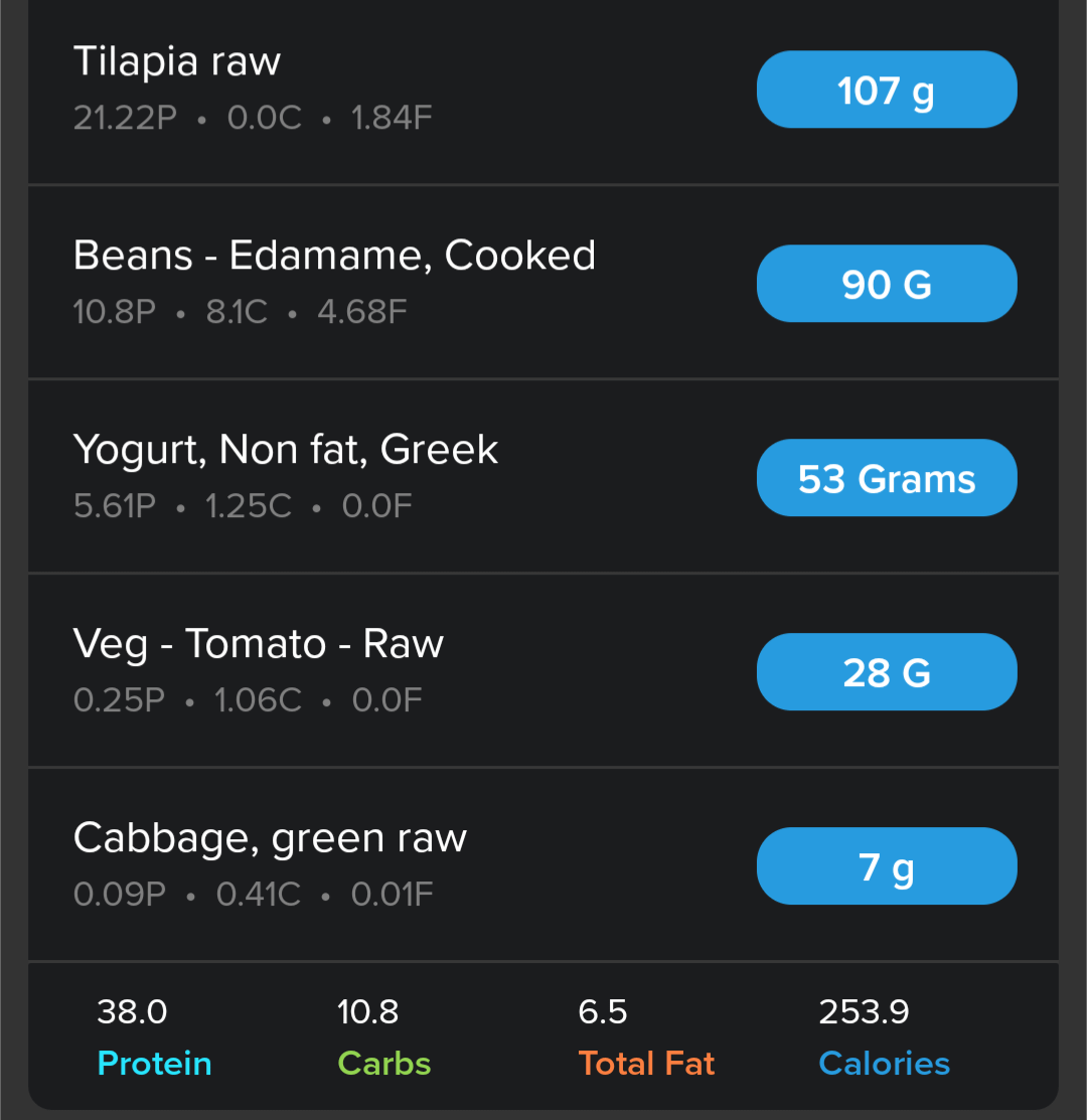 Baked tilapia topped with Greek yogurt, cabbage, tomato and capers. I also added a squeeze of lime and some tomatillo salsa. Big side of edamame.