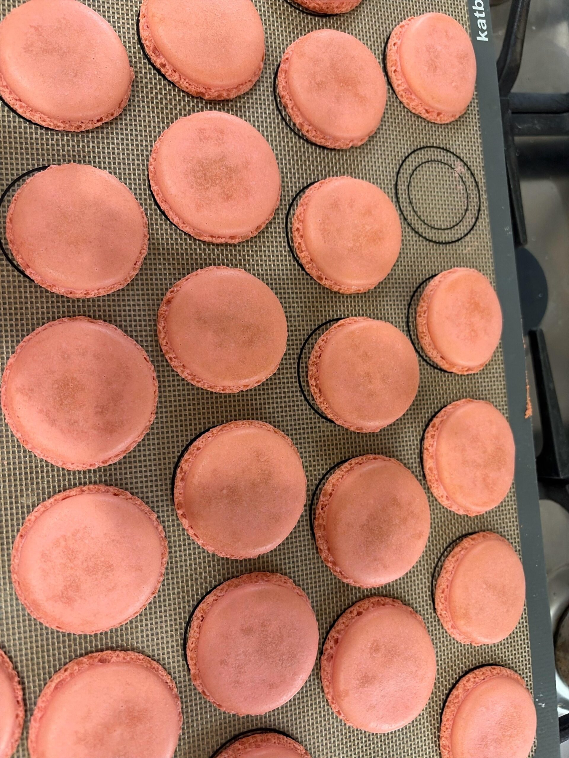 The tops don’t look brown to me. They look wet. Ususly indicating that the tops of the shells are fragile and thin. This ususly happens when the batter is over mixed and/or the maringue was too weak.