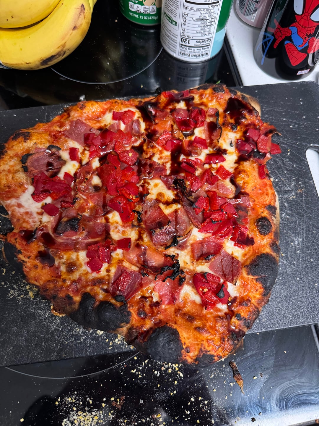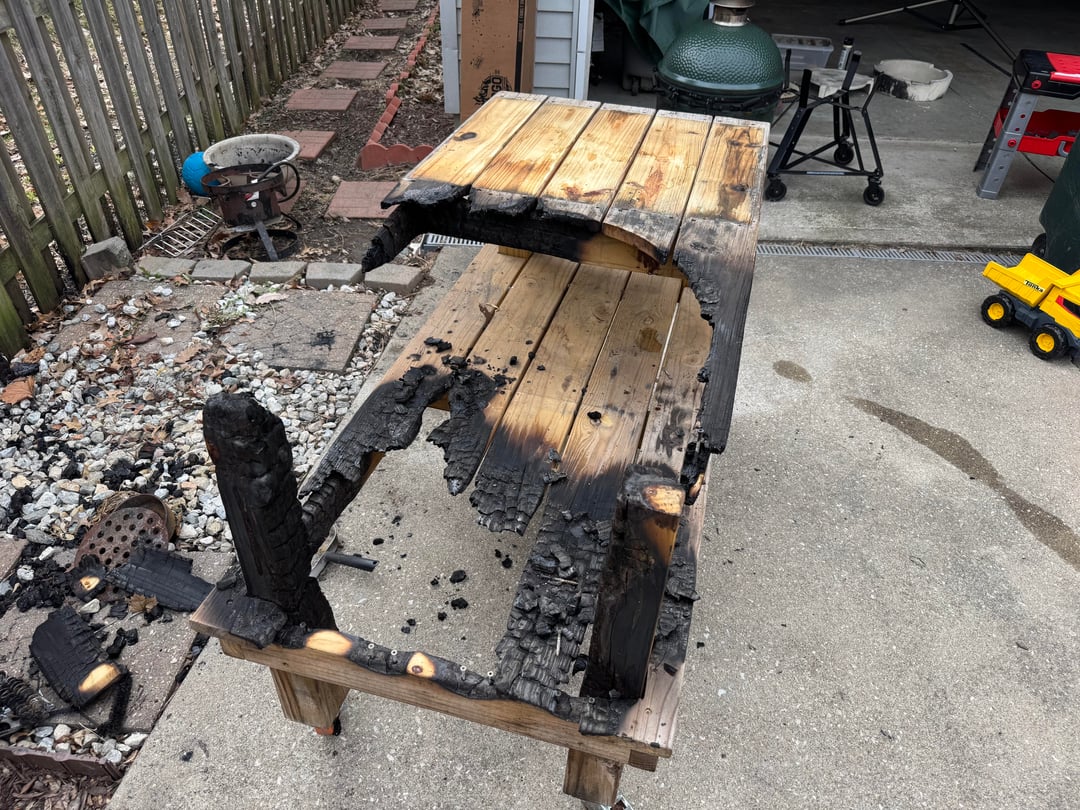 Pizza turned out great. Screen was closed and wind must have pulled out a spark, whole table went up in flames. Luckily I caught it before any real damage was done.