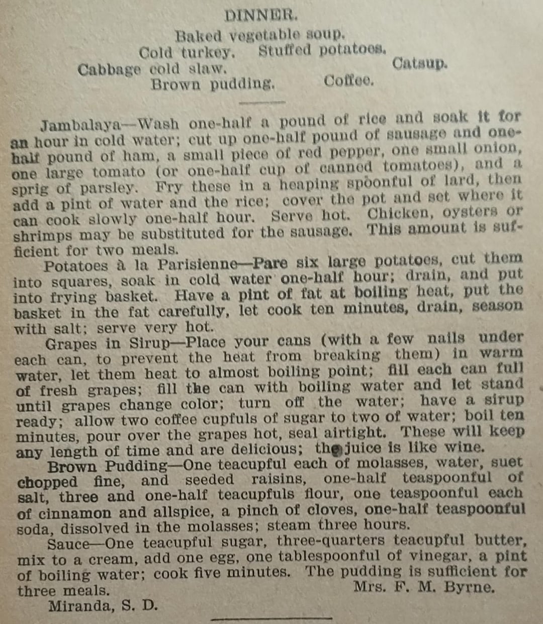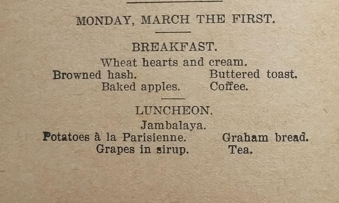 Menu March 1st 1896by Weary-Leading6245 6 Comments Ecollager 4 weeks ago Rice and potatoes in the same meal is so strange to me. Filling, I guess. DaughterOfFishes 4 weeks ago I’m eating well today! Love that we have leftover turkey from yesterday. Ballet_blue_icee 4 weeks ago Fancy name for french fries! Gonna start using it. Fuzzy_Welcome8348 4 weeks ago Everything sounds so good! innocentsalad 4 weeks ago I didn’t even know wheat hearts existed SaltMarshGoblin 4 weeks ago “Cabbage cold slaw”