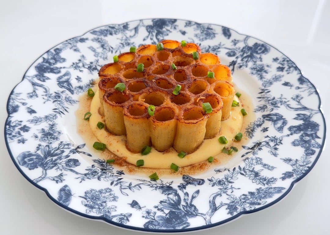 The sauce looks like a cheese base for Mac and cheese and looks creamy enough but this isn’t a gratin. It’s not macaroni. I make gratin once a week and I really feel the palate is going to be overrun by paprika and bare pasta because there isn’t enough cheese.