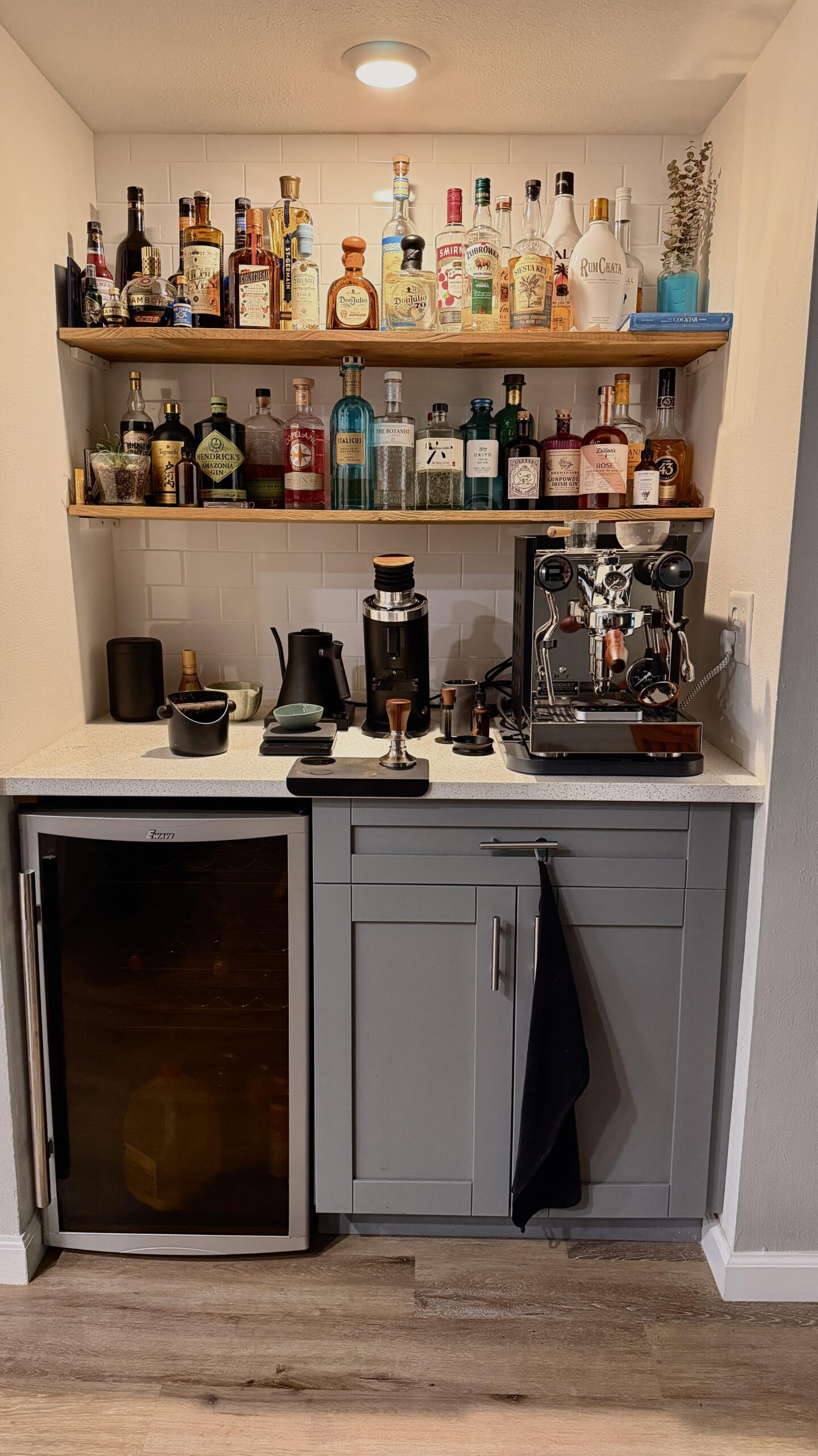 I’ve been getting into coffee over the past year. This is the current setup.Rate my setup I’d love any recommendations for improvement. Rocket Appartamento TCADF64 GrinderStagg Fellow Kettleby rachelsykes23 9 Comments Cocktail_Racer 2 weeks ago I’m here for the cocktail coffee station. 🫡 don-mage 2 weeks ago Add any additional support to your shelf. It’s bowing. Orunnerde 2 weeks ago Really like your setup. Like the cozy and relaxing vibe. How do you like the Appartamento?Just noticed that you are also into Mocha as well 👍 ImJustNade 2 weeks ago Bulleit Rye >>>My station is also more than coffee alone — now for espresso, matcha, and cocktails. SephHaley 2 weeks ago Where did you get your portafilter from? I love the look ansoni- 2 weeks ago I did the wine/milk fridge combo as well. It has worked well. The way the fridge opens will likely annoy you. Still_Ice_4489 2 weeks ago Definitely a nice set up! DarkRyder3 2 weeks ago Oh yeah, that’s nice….Oh, there is a coffee setup underneath all that booze… When is the party? south_west_sam 2 weeks ago Which version of the DF64 do you have, and what did you have prior to that if anything?