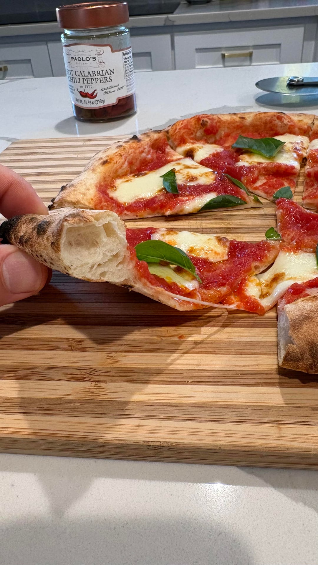 Caputo “Blue” Pizzeria Flour, 67.5% hydration, 72 hour cold ferment. Topped with Calabrian chili oil and post-oven basil. by f_cinergytraining 1 Comment Opposite_Musician914 2 weeks ago È così invitante m!