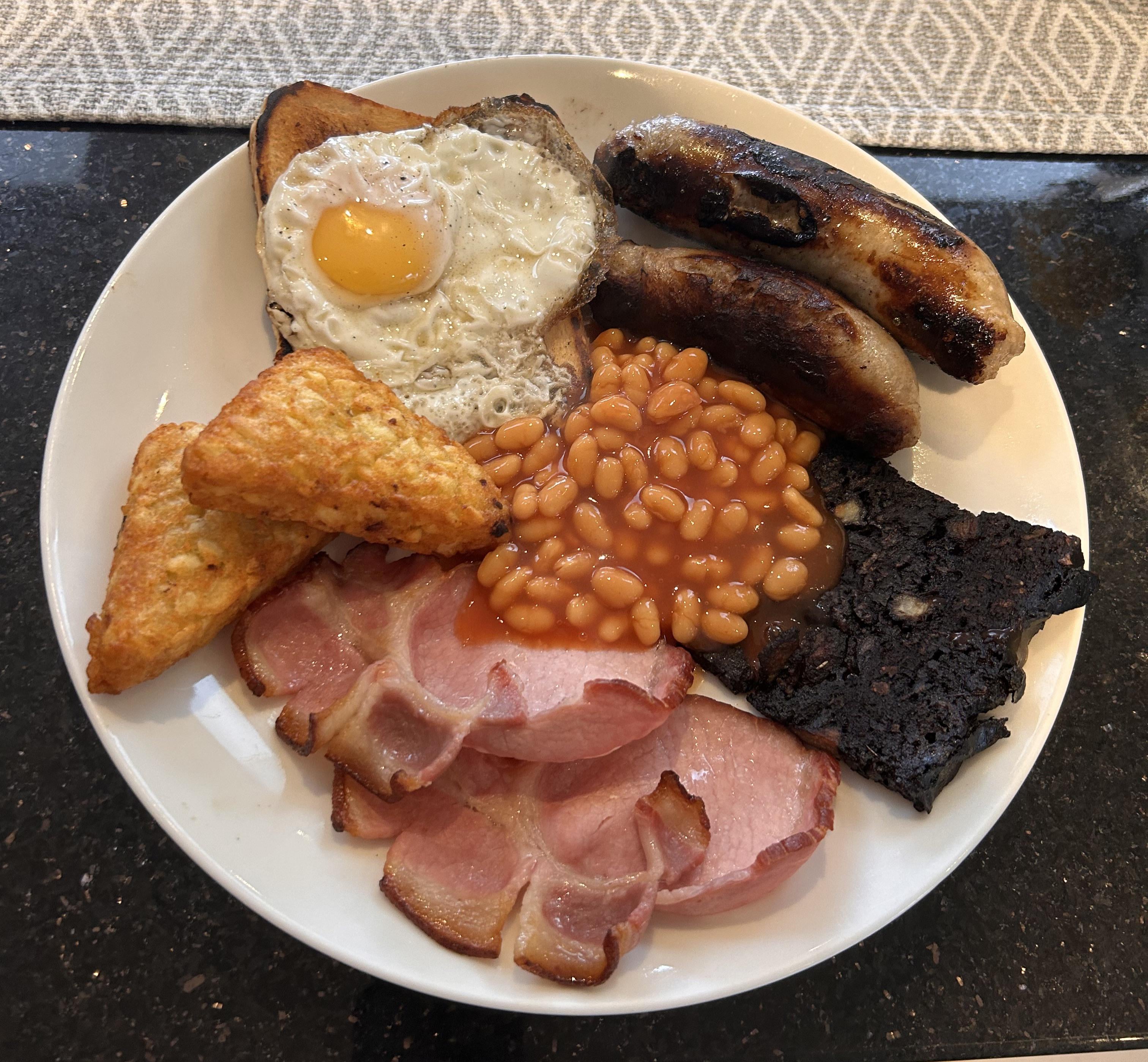 Smoked bacon, sausage, black pudding, hash browns, fried bread (cooked in the bacon fat) and beansby Which-Ride2788 Dining and Cooking