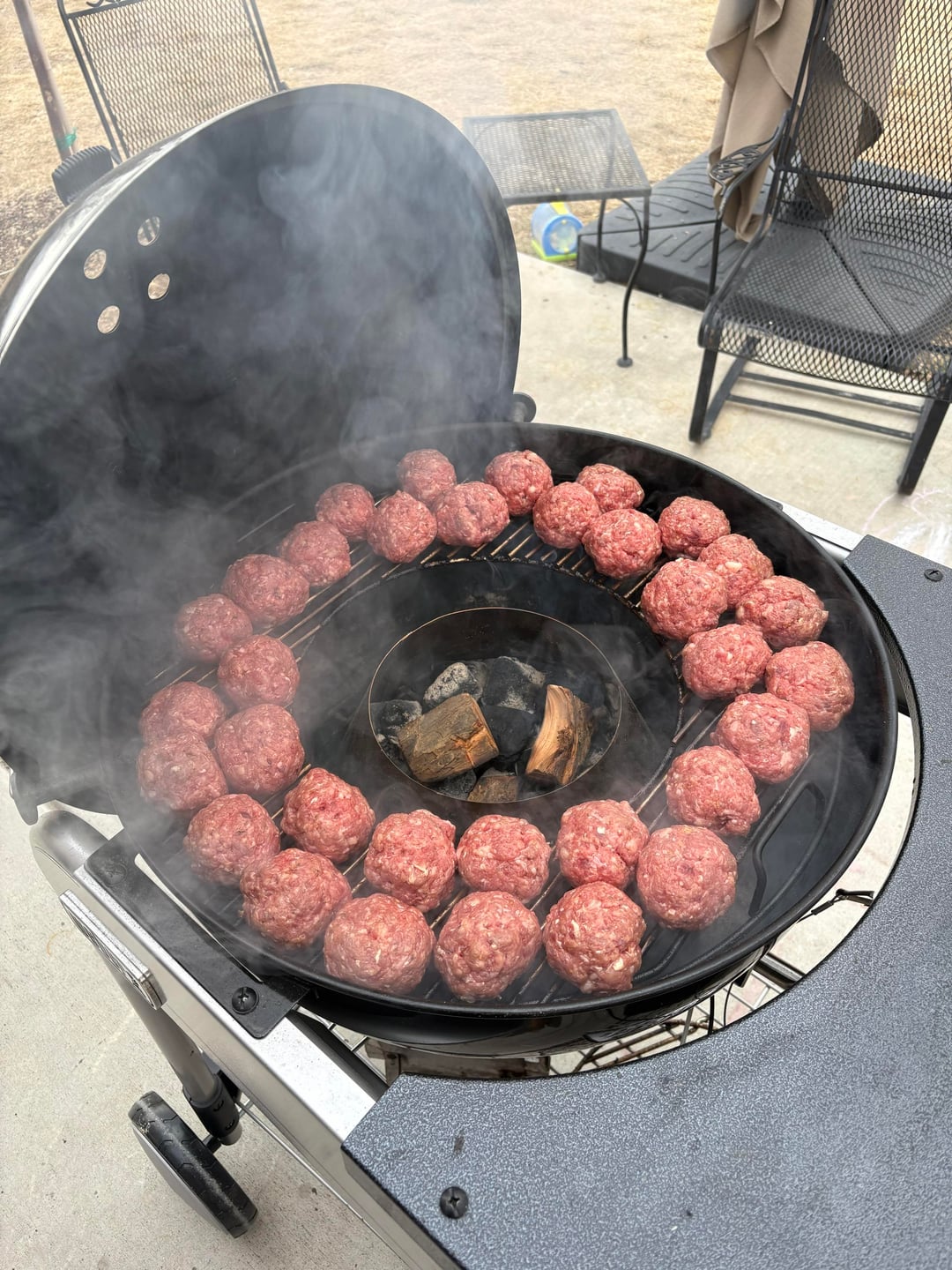 At first I was puzzled thinking: A. Those are too big for smash burgers, and B. What are they smoking the ball before putting it on the griddle? Then I realized that meatballs were the goal the whole time. 🤔💡
