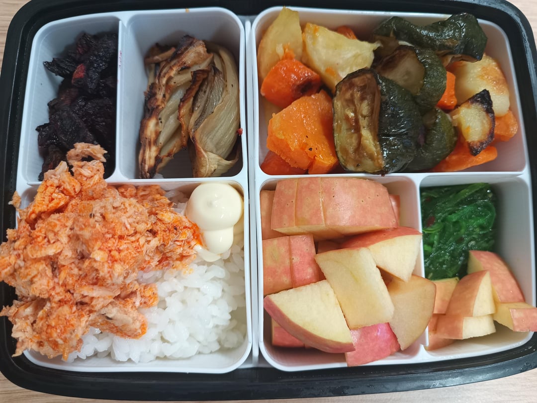 Happy Monday,Here we are again.Lazy start to the week. Few roast vegetables, with tuna, rice, wakame, and apples.Stay focused everyone. Enjoy the week.by TraditionNo1778 1 Comment Fuzzy_Welcome8348 1 week ago Looks good! I love the variety here