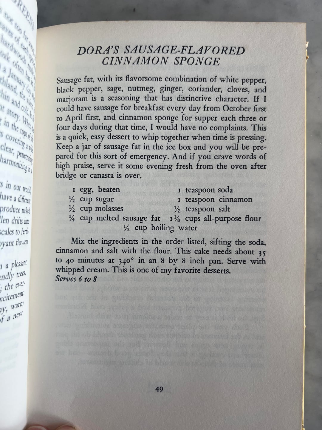 I’ve had this book in my collection for a long time, but never cooked/baked from it. I cracked it open over the weekend and found a number of really charming recipes. What might you use in this for “sausage fat”? Would be happy to report back once I’ve made it!