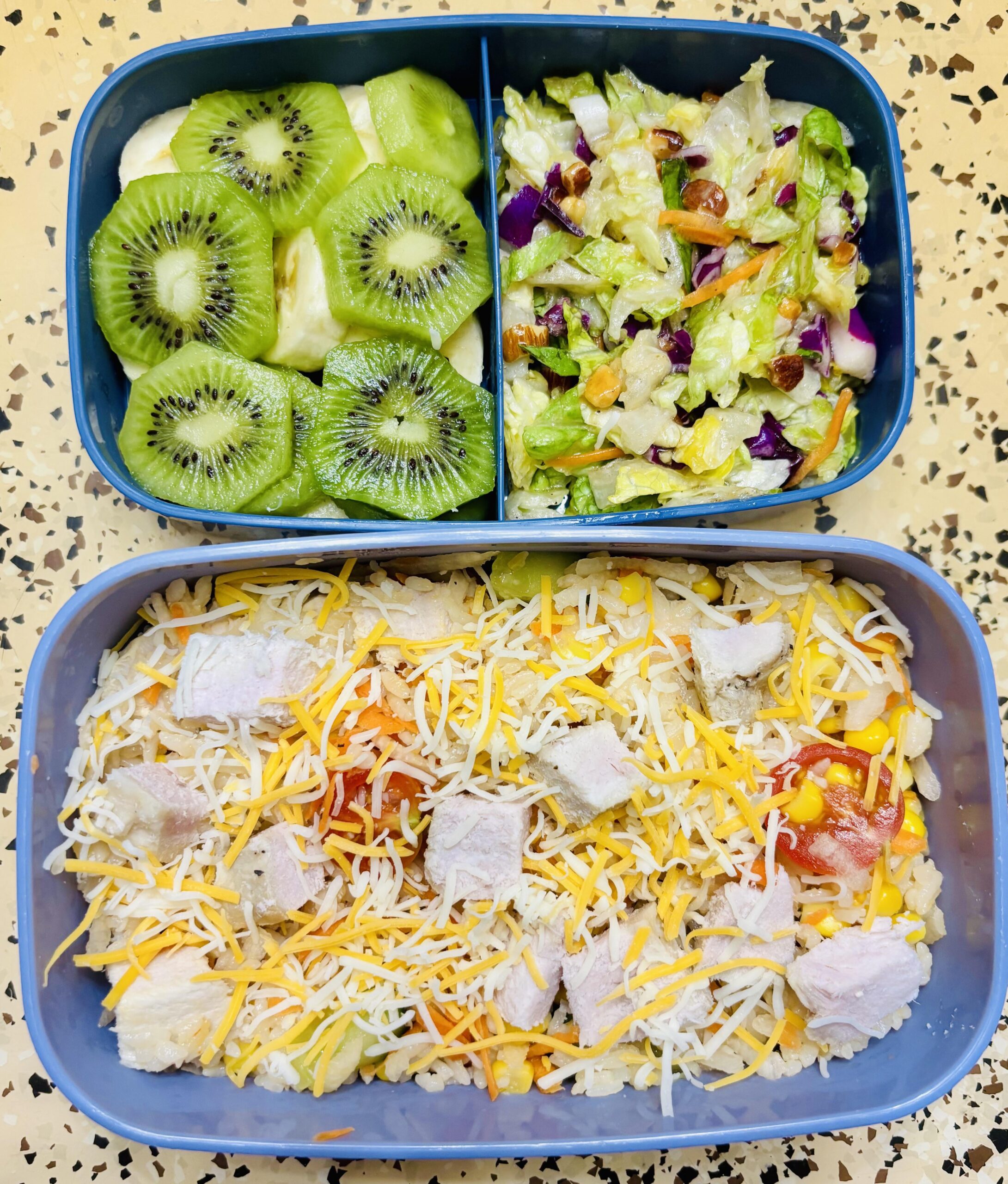 kiwi and banana; mixed rice with pork and veggies and cheese; salad by c-e-bird 1 Comment Fuzzy_Welcome8348 1 week ago Looks good!
