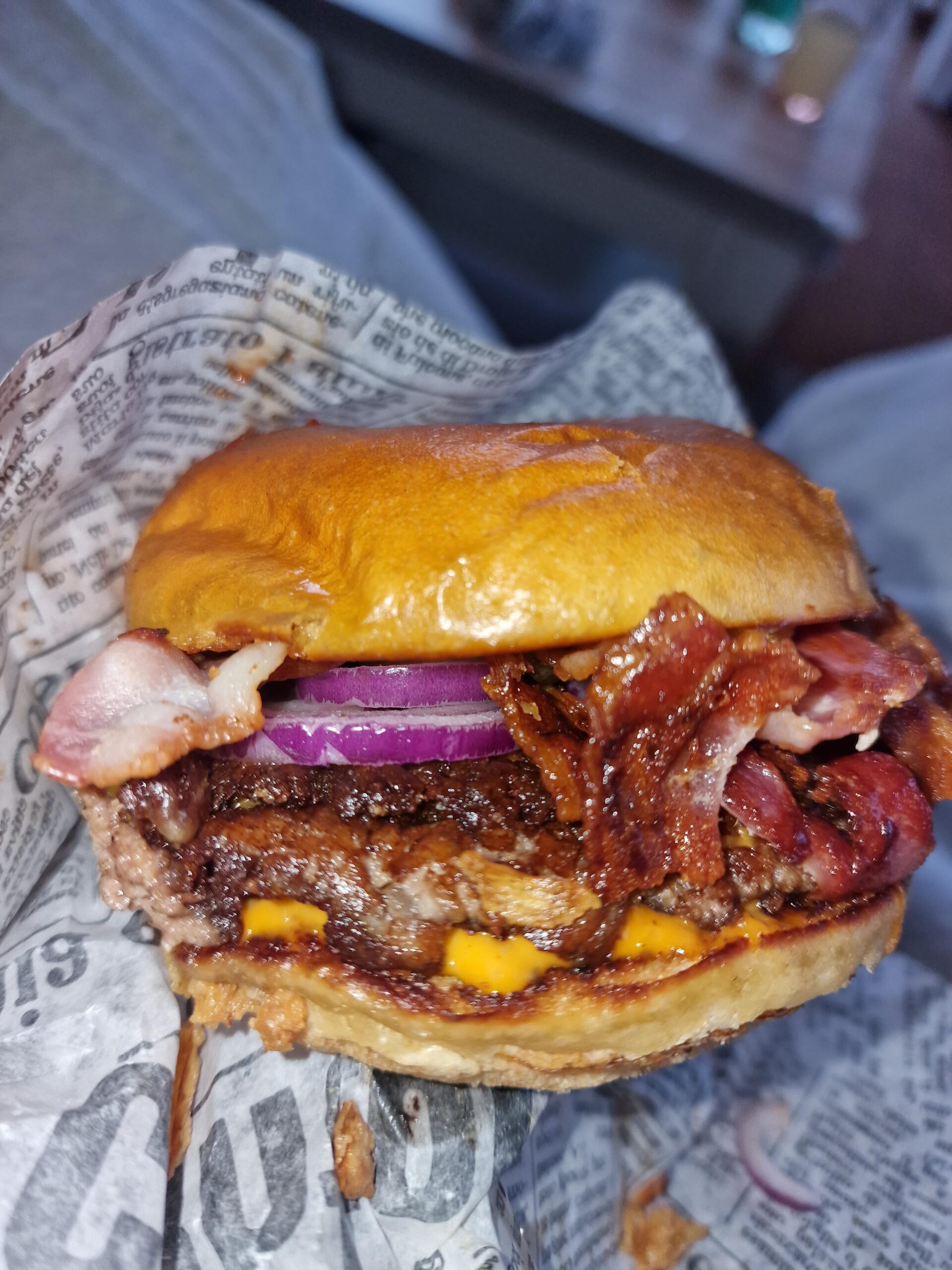 No words neededby Cartman_bxt 9 Comments TradingIrish1006 1 week ago This looks unbelievable! The bacon and the onions my God ha RBDQBK 1 week ago Just napkins Academic-Pudding-43 1 week ago Napkins please… Ok_Salad_8513 1 week ago Yum rav-age 1 week ago just the one.. mmmmmm roxyyymazing 1 week ago this is the best NoAbbreviations290 1 week ago If that bottom bun ain’t soggy, yes please. slong143 1 week ago Holy fricking moly! Where did you get that from? GamerGramps62 1 week ago Pure burger perfection!